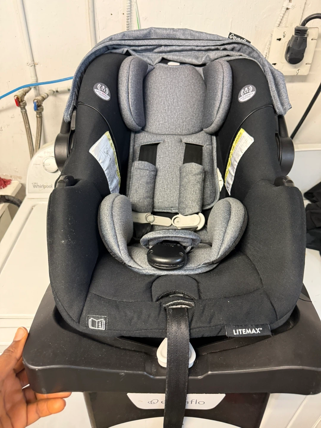 Selling an Evenflo LiteMax infant car seat. It's in great condition and ready for a new little one! This car seat is designed for safety and comfort, making it perfect for your baby's first rides. Feel free to reach out if you have any questions!