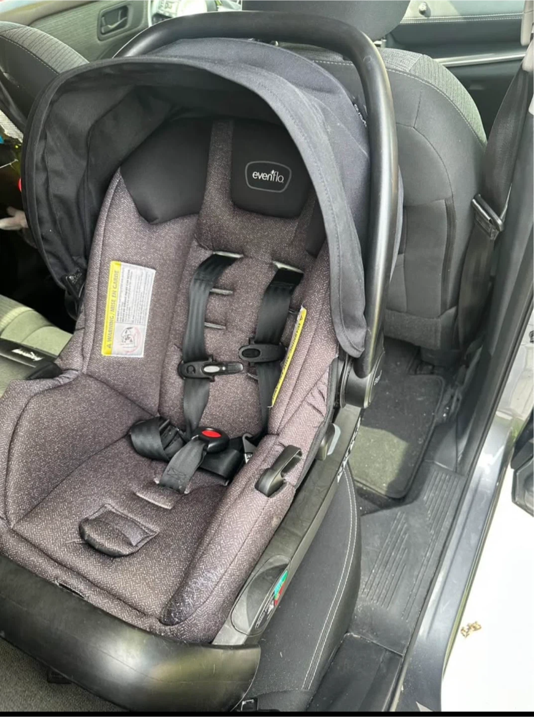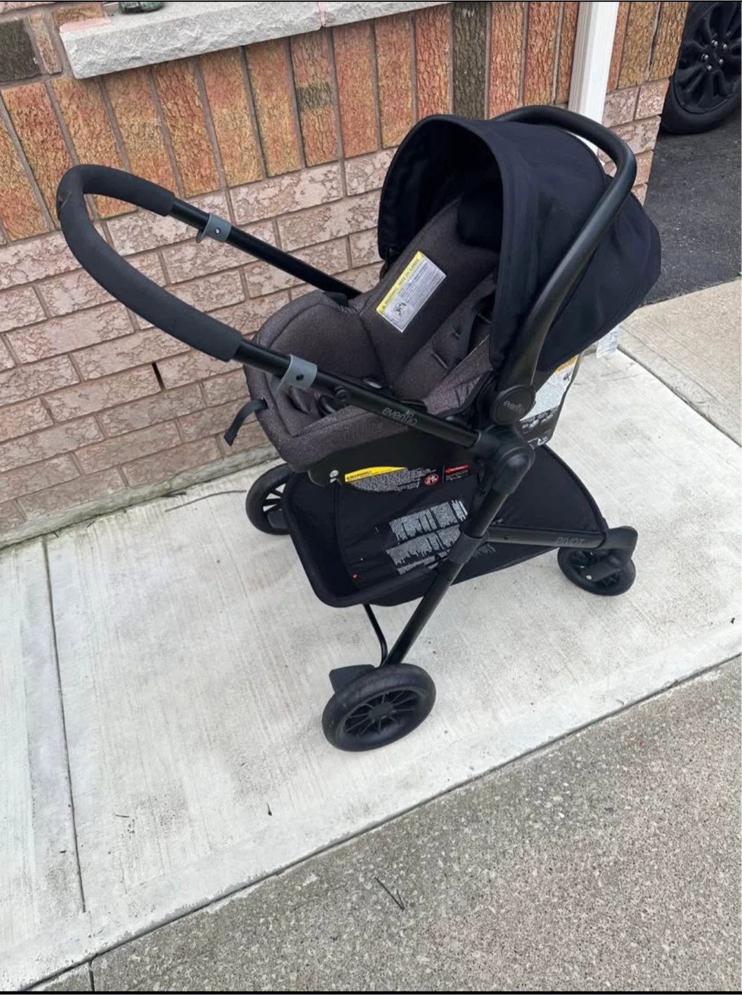 The Evenflo Pivot Modular Travel System is a lightweight stroller and car seat combo that includes the SafeMax Rear-Facing Infant Car Seat and SafeZone Base with an anti-rebound bar. • Its modular frame offers 6 modes, allowing configurations such as parent-facing, forward-facing, carriage mode, toddler seat, or an infant car seat frame. • The toddler seat supports children up to 50 lb (38 in/96 cm), while the infant car seat holds up to 35 lb (32 in). • Safety features include rollover and side-impact testing, a removable body pillow for comfort, and a belt lock-off system for secure installation. • Extra conveniences include a large storage basket, ergonomic handle, oversized cruiser tires, a large canopy, and a removable arm bar for easier baby transfer.
