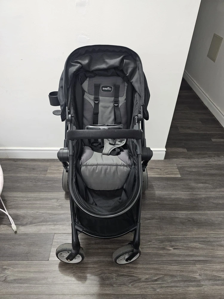 Selling an Evenflo Safemax ICS car seat and stroller combo! The car seat's model number is 24505259CG. It was manufactured in 2020 November 11 and expires in 2026 November 11