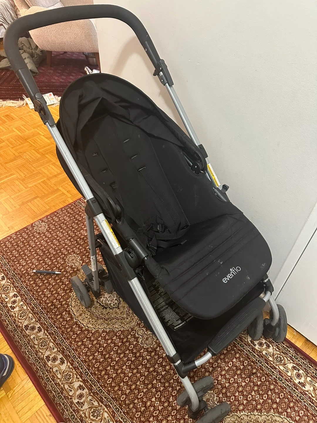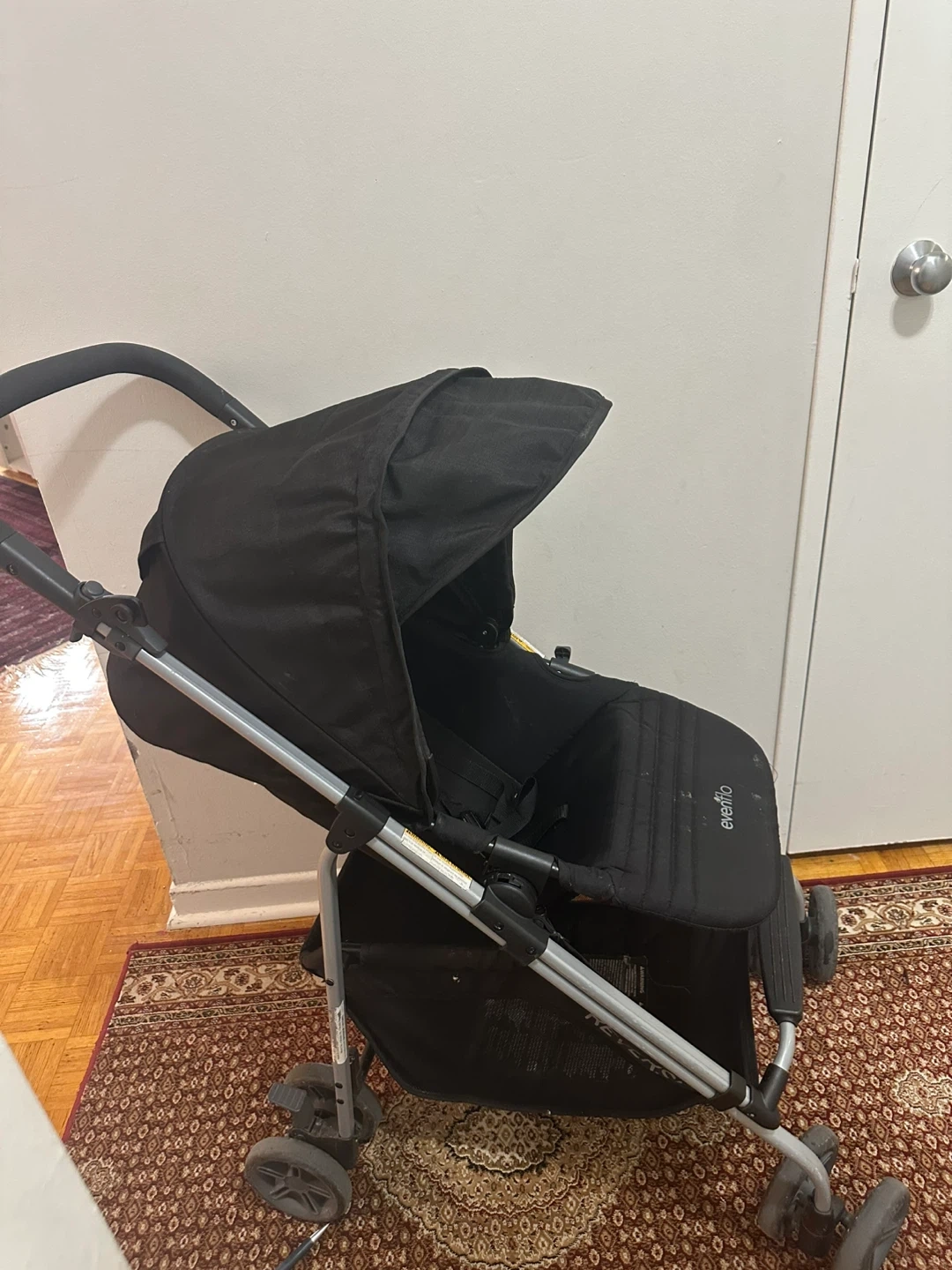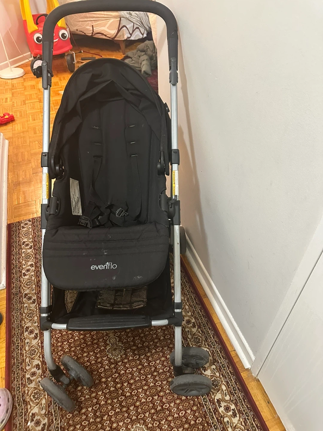 12Selling a used Evenflo stroller in black! It's in good condition and ready for a new home. Perfect for taking your little one on strolls around the neighbourhood or trips to the park