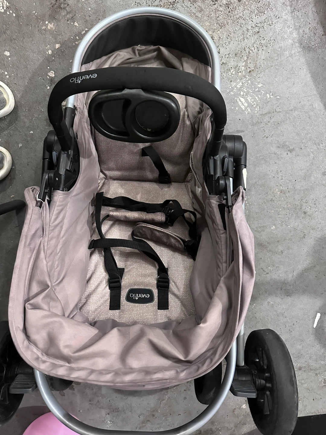 10Selling an Evenflo stroller that's in great shape! It's a lovely neutral colour and ready for your little one's adventures. Fairly used and can be converted to a flat bed just like bassinet seat for your baby’ ease.
