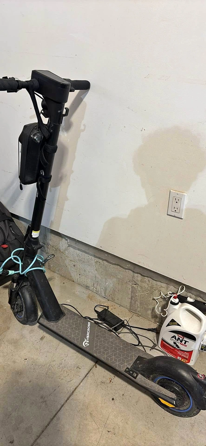 10Ever cross electric scooter fair condition. Button clicks a little weird but still works. Light fell out of place but is still attached and works, it can be super glued back into place. Kick stand has fallen off but can be replaced. Charger is broken still works but recommend getting a new one on Amazon around $16.