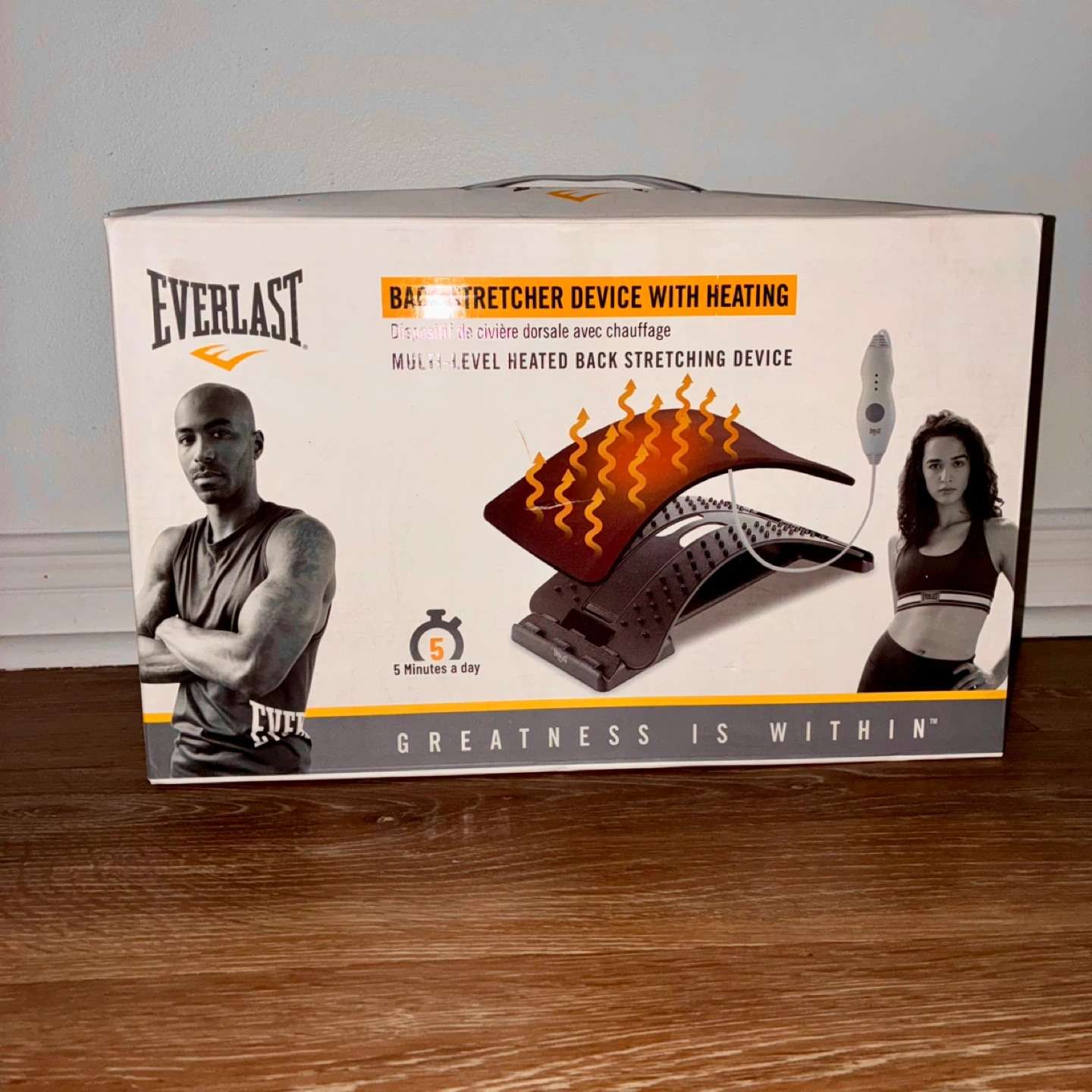 27Brand new and in original packaging. Pick-up and cash only. Everlast back stretcher device with heating! It's a multi-level heated back stretching device that can be used for just 5 minutes a day. Greatness is within!
