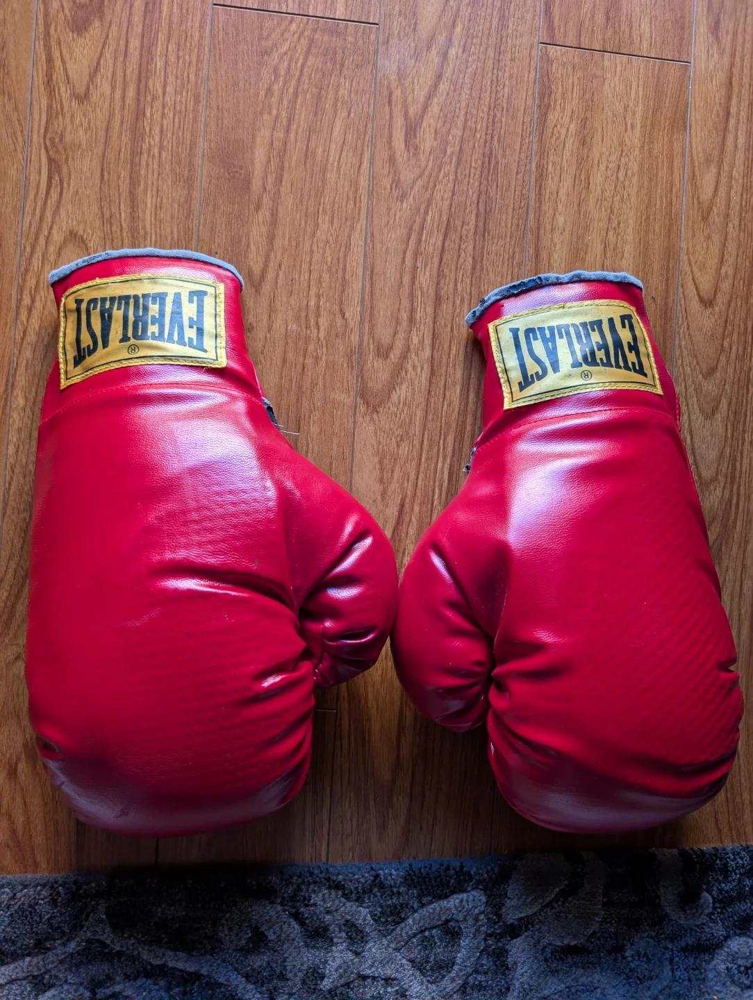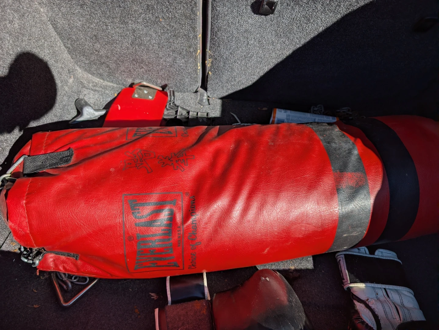 5Selling a set of Everlast boxing gloves and a punching bag. The boxing gloves are red and show some signs of use, but are still in good condition for training. The punching bag is also red and features the Everlast logo. Great for anyone looking to get into boxing or just improve their fitness!