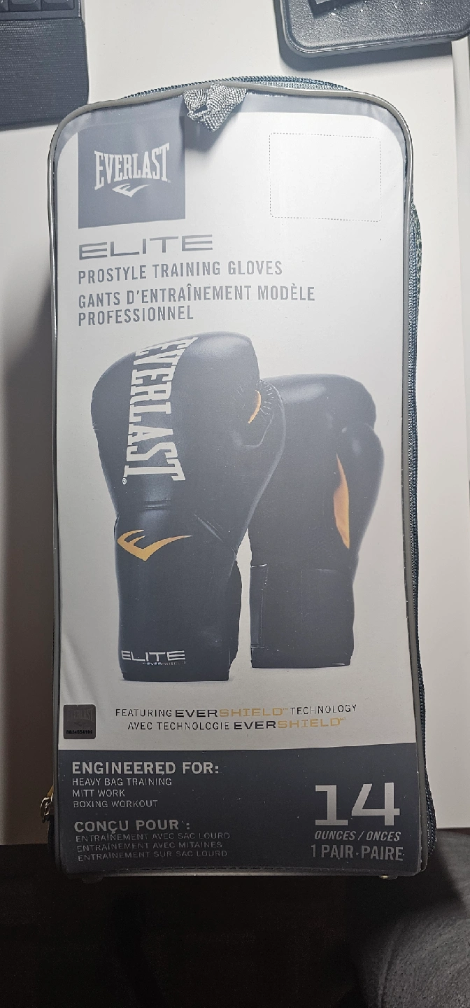 79Selling a pair of Everlast Elite Prostyle Training Gloves! These are 14 oz gloves, perfect for heavy bag training or boxing workouts. Lightly used.