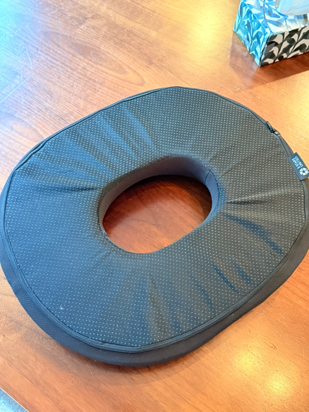 32I'm selling an Everlasting Comfort seat cushion in black. This cushion is designed to provide comfort and support while sitting. Perfect for home, office, or travel! It features a non-slip bottom to keep it in place and is made with premium materials for durability and long-lasting comfort