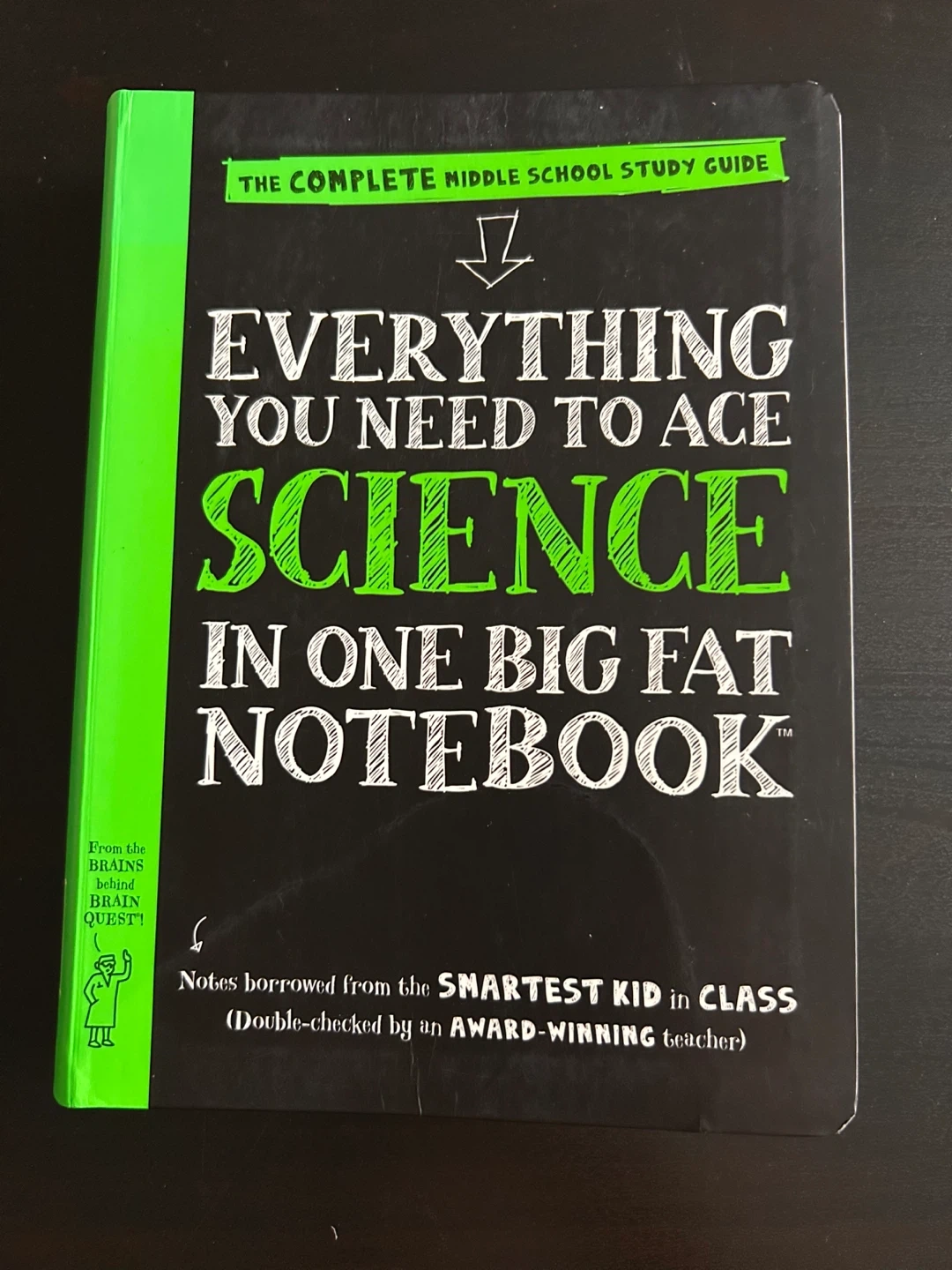 60Selling "Everything You Need to Ace Science in One Big Fat Notebook: The Complete Middle School Study Guide"! This notebook is filled with notes borrowed from the smartest kid in class and double-checked by an award-winning teacher. It covers everything from motion, forces, and work to energy, outer space, and the human body. Perfect for middle school students looking to ace science!
