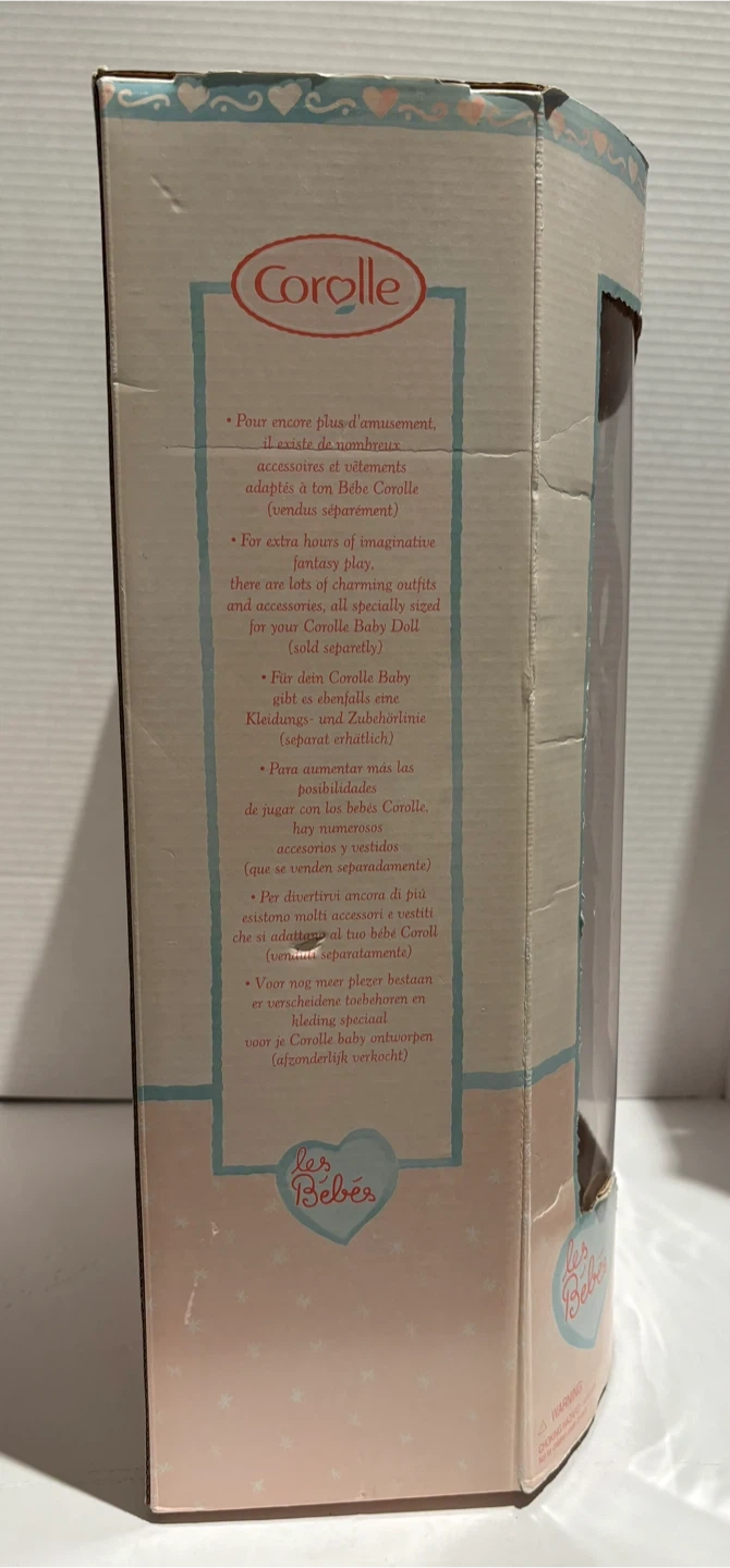 A rare and wonderful find for Corolle collectors! This is the authentic 1999 Corolle "Love Pink" baby doll from the "Les Bébés" collection. This 14-inch (36 cm) large baby doll is New in Box (NIB) and has never been removed from her original 1990s display packaging.