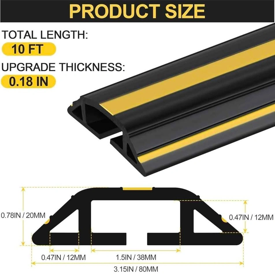 Floor cable cover is made of highly flexible PVC material and is wear and scratch resistant. It's easy to unroll and can be cut to any length with a knife or strong scissors. It is thick enough and doesn't bend easily.