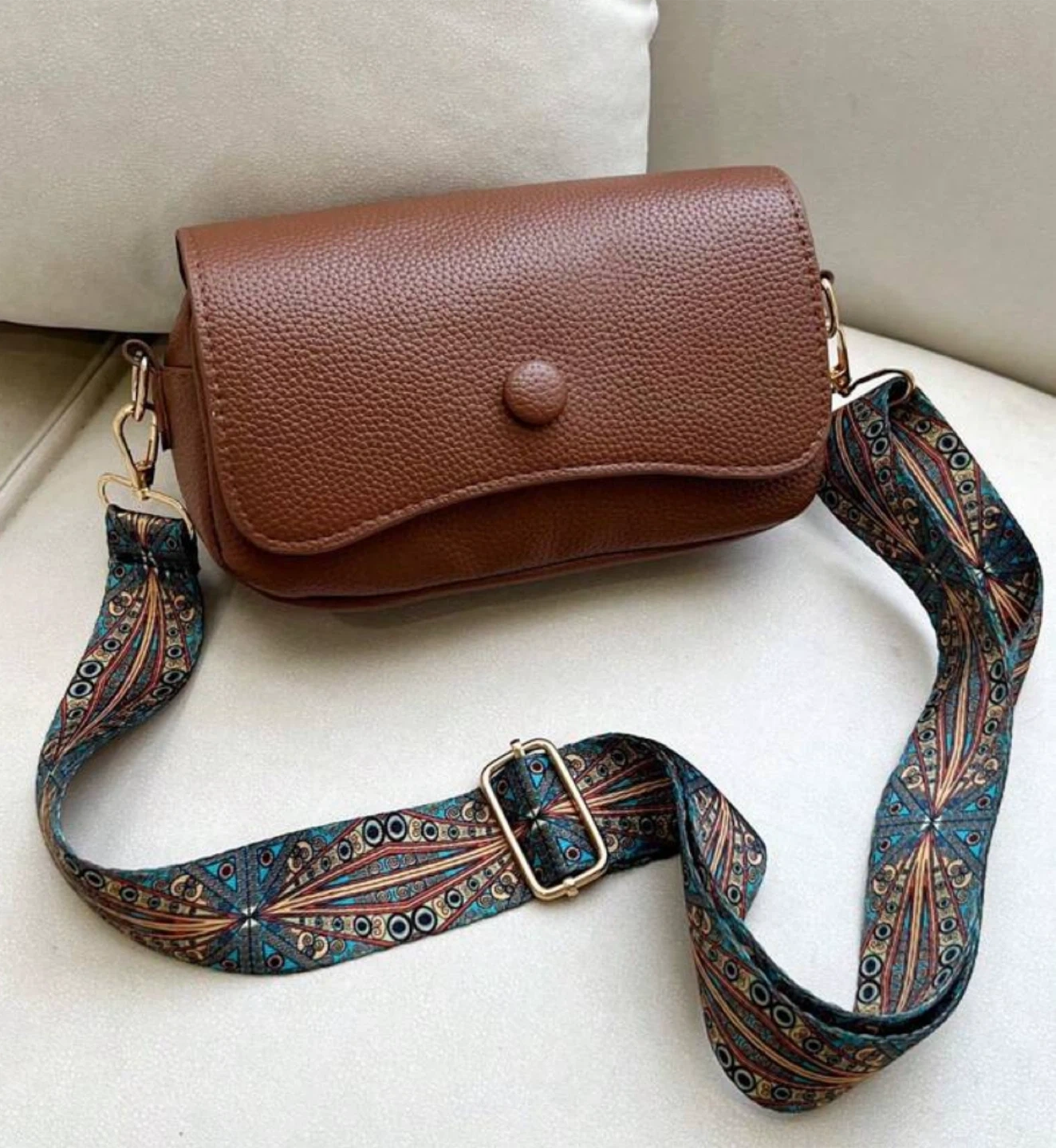 Brown Crossbody Bag with Decorative Strap