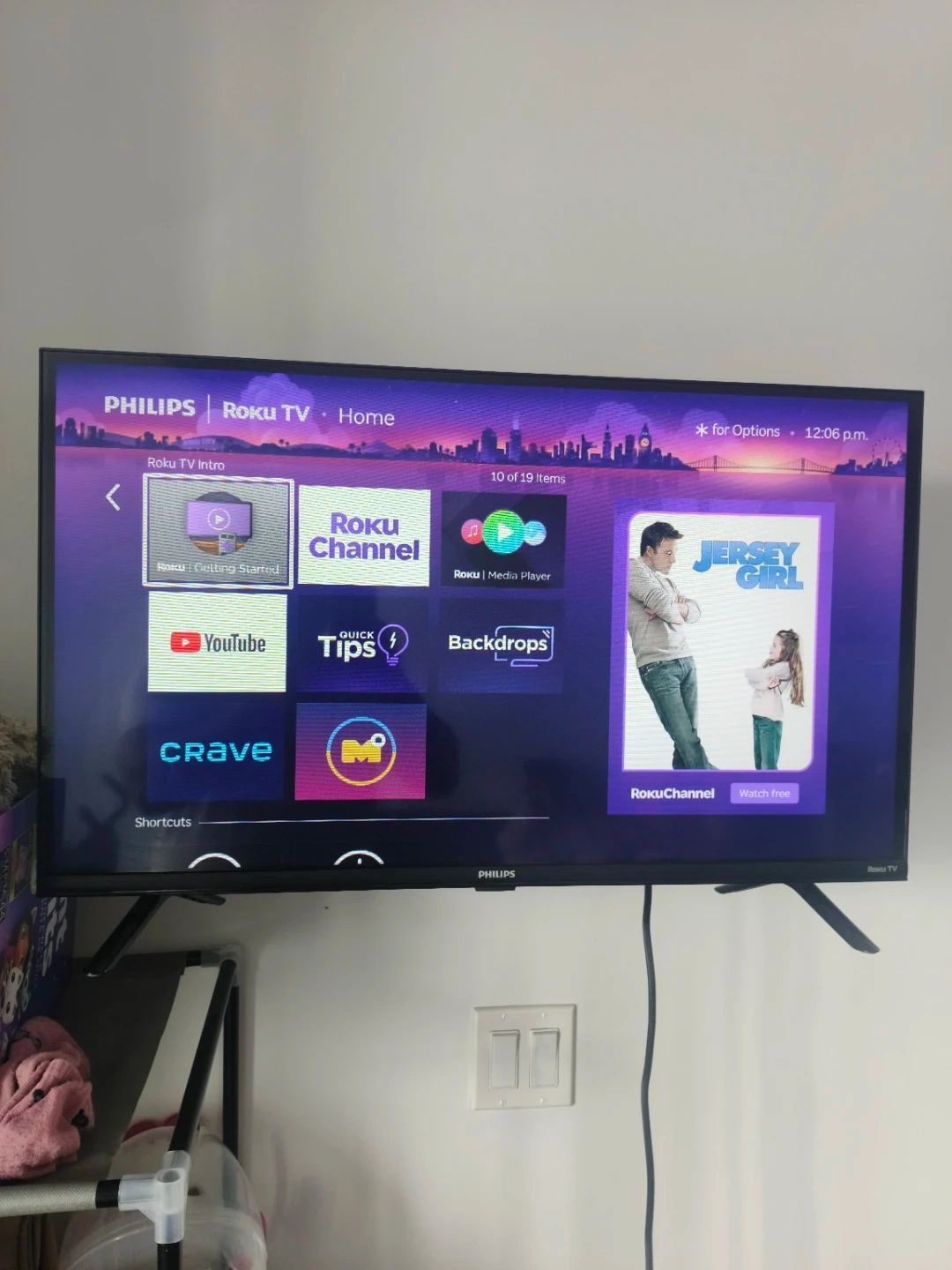 Philips Roku TV with wall mount stand