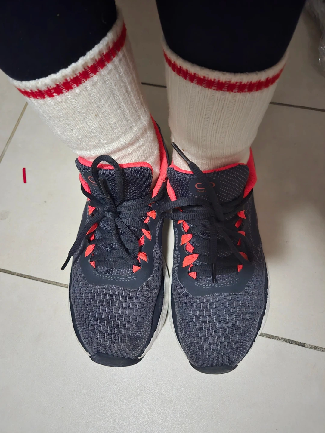 Selling a pair of Kaliji running shoes in a stylish grey and coral colour combo! They're perfect for your daily jogs or workouts. These shoes are both comfortable and functional, ready to help you reach your fitness goals