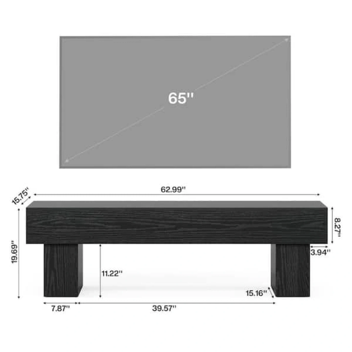 Dimensions of 63 in. L x 15.7 in. D, this TV console can easily accommodate tvs ranging from 55 in. to 65 in.