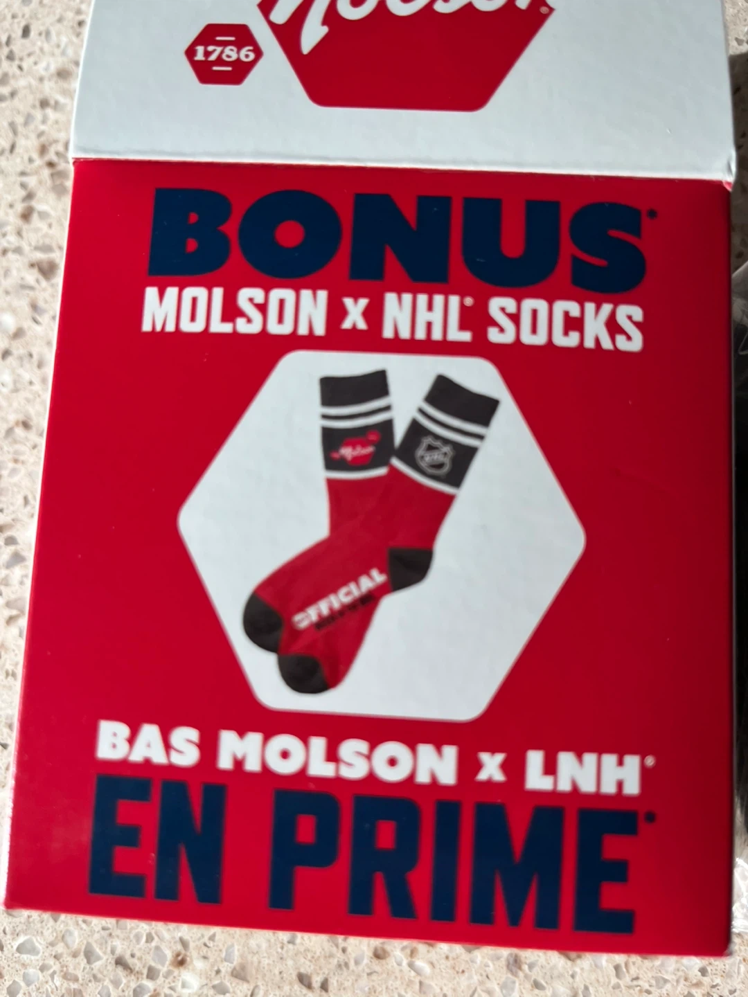 Selling a pair Molson x NHL socks! These are brand new and still in the packaging. Perfect for any hockey fan or Molson enthusiast