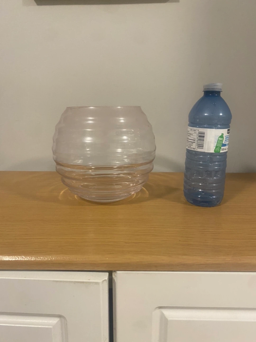 This clear glass vase has a unique ribbed texture around its body. It's perfect for displaying flowers or as a decorative accent piece. Glass material.