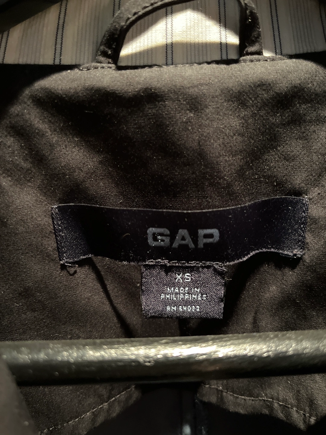 Size XS, with pockets and a button closure. Made in the Philippines. Doesn’t fit me anymore and hardly worn. No stains or rips.