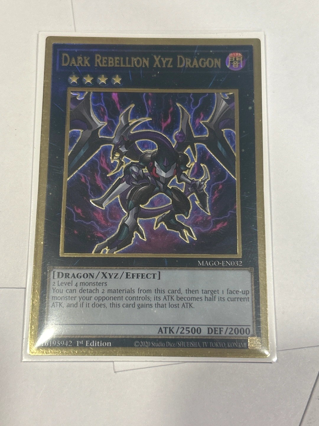 Selling a Dark Rebellion XYZ Dragon Yu-Gi-Oh! card. It's in great condition and ready for a new home! This is a 1st Edition card from 2020. A must-have for any collector!