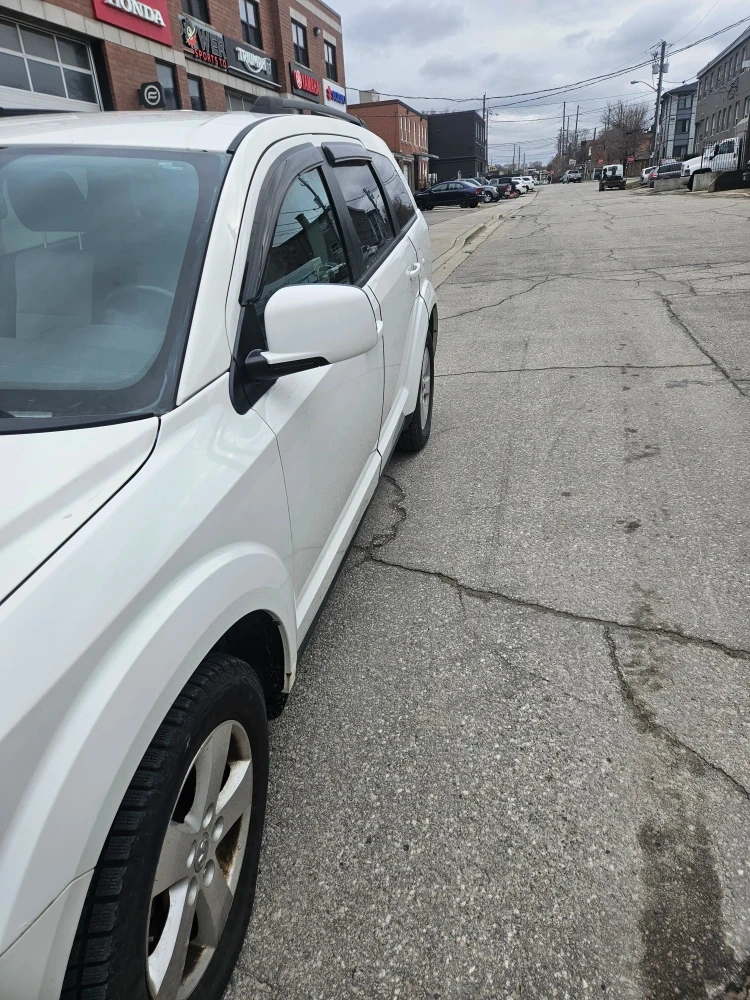 This is a white Dodge Journey SUV. It has a spacious interior with two-tone seating. It's a reliable vehicle for families or everyday driving.selling as is. Ownership to be changed before pick up by buyer