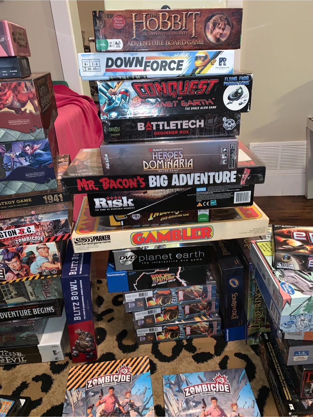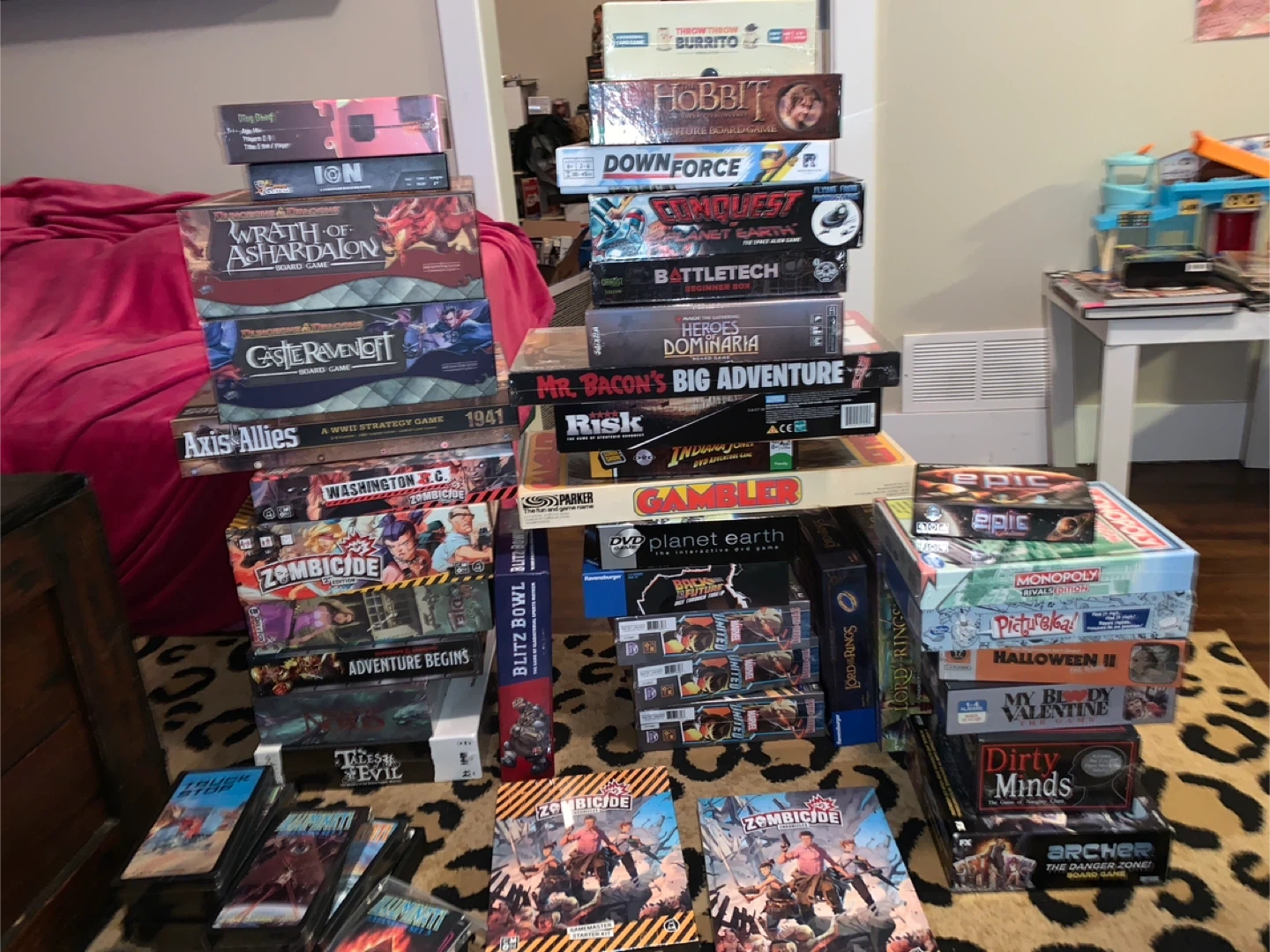 Bundle of various board games including Zombicide, Monopoly, Risk, and more. Perfect for game nights! Mostly includes original boxes and components.