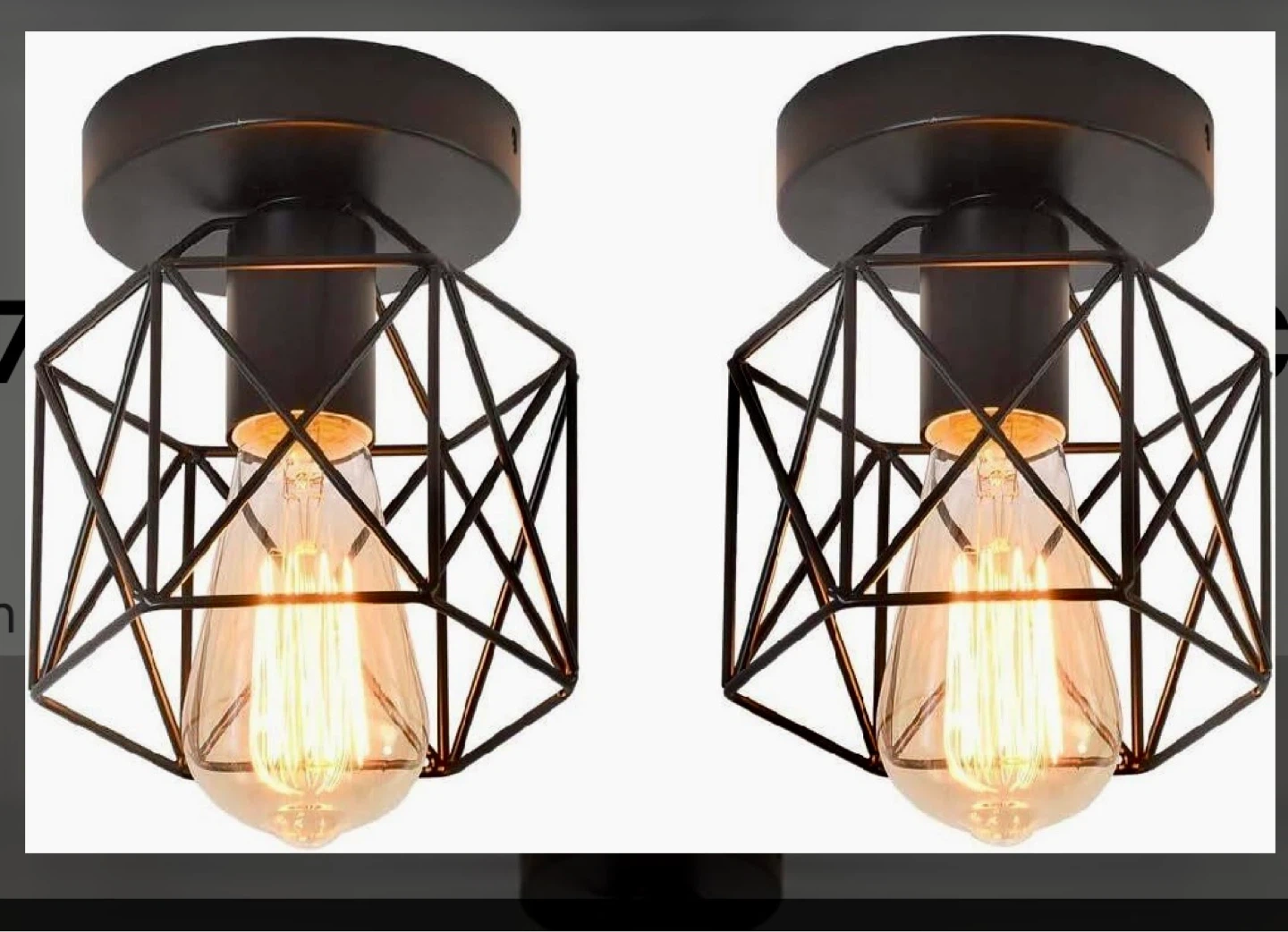 Black Metal Cage Flush Mount Ceiling Light Fixture (Set of 2)