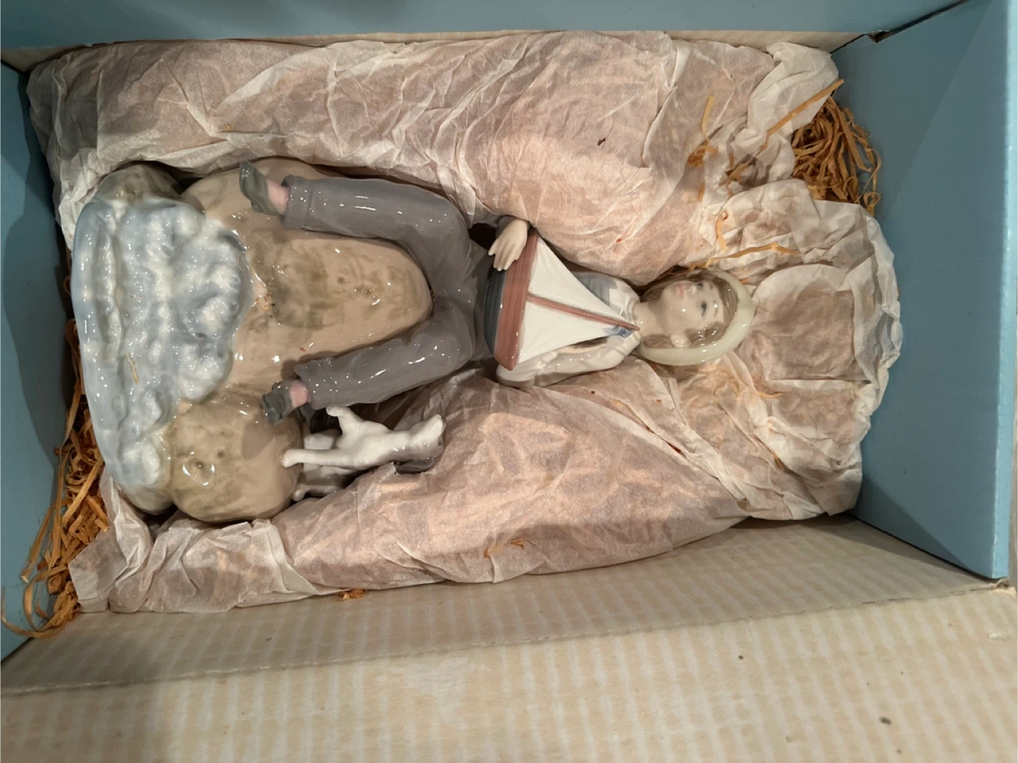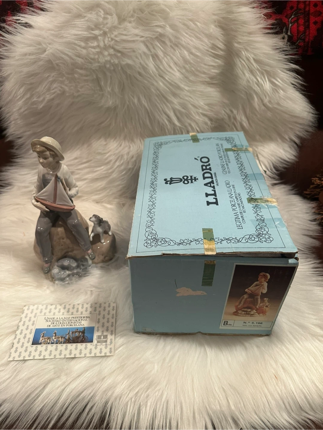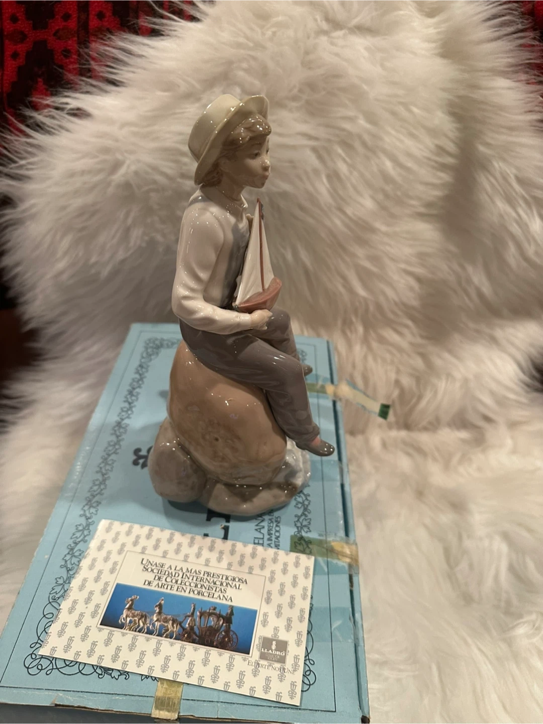 Selling a Lladro figurine called "Niño con Barquita", which translates to "Boy with sailboat". The figurine is in good condition and comes with its original box. The model number is 5.166. It's a beautiful piece for any collector!