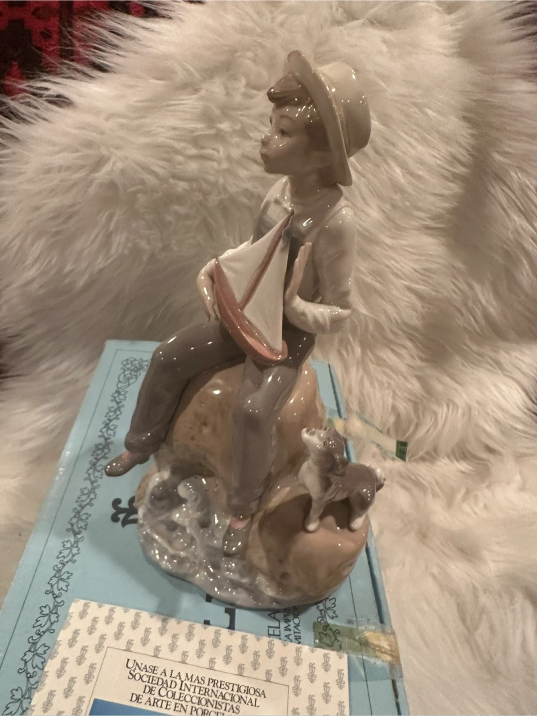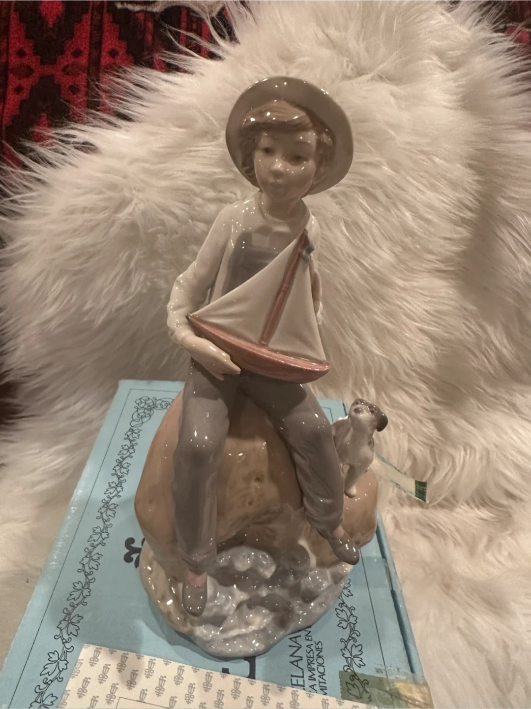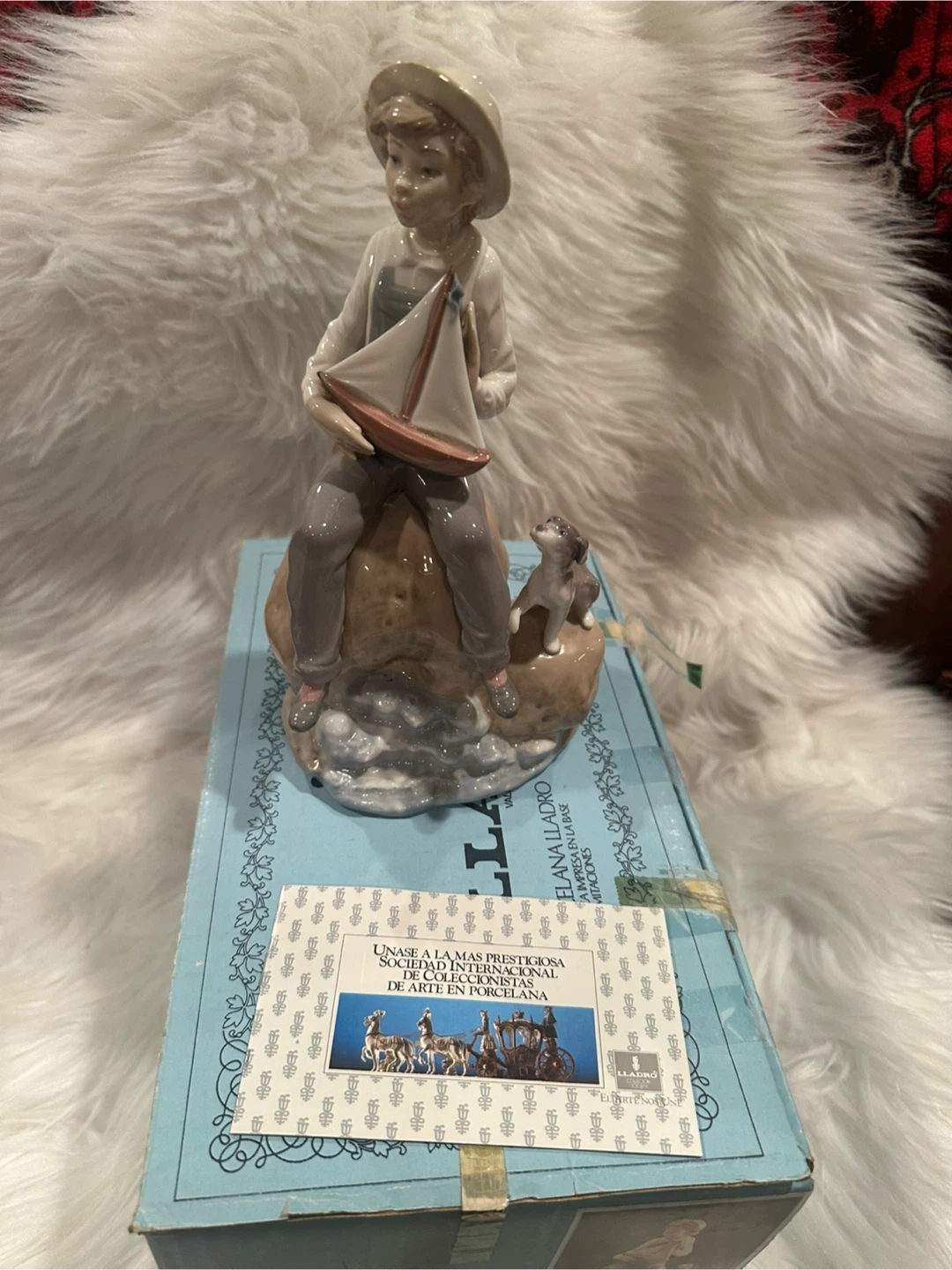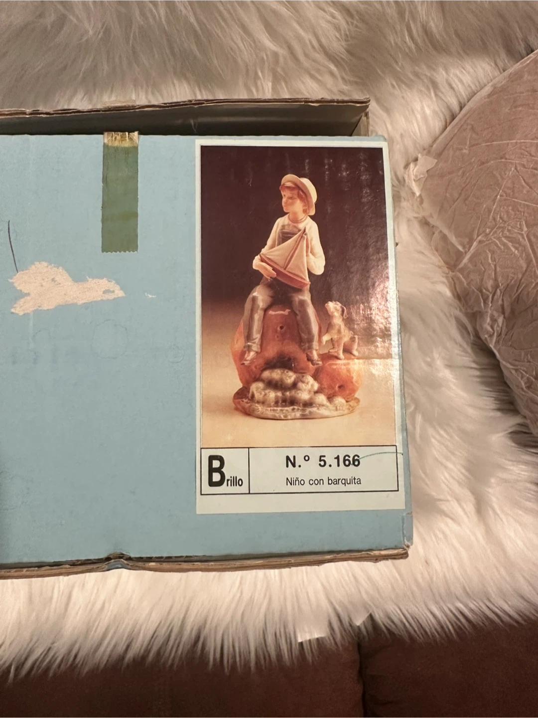 Selling a Lladro figurine called "Niño con Barquita", which translates to "Boy with sailboat". The figurine is in good condition and comes with its original box. The model number is 5.166. It's a beautiful piece for any collector!