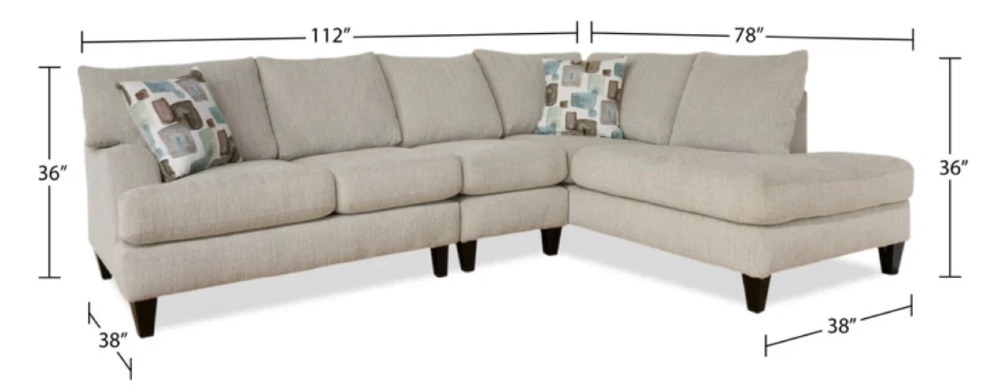 Made in Canada Nofia 3-Piece Right-Facing Chenille Fabric Sectional with Wood Legs - Linen Beige without pillows...$900