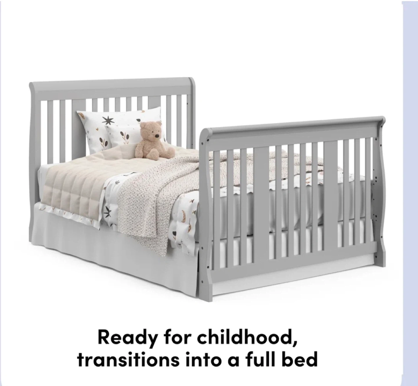 Beautiful grey grow-with-me crib in excellent condition. Converts from crib to toddler bed and can later transition into a full-size bed, making it perfect for long-term use.