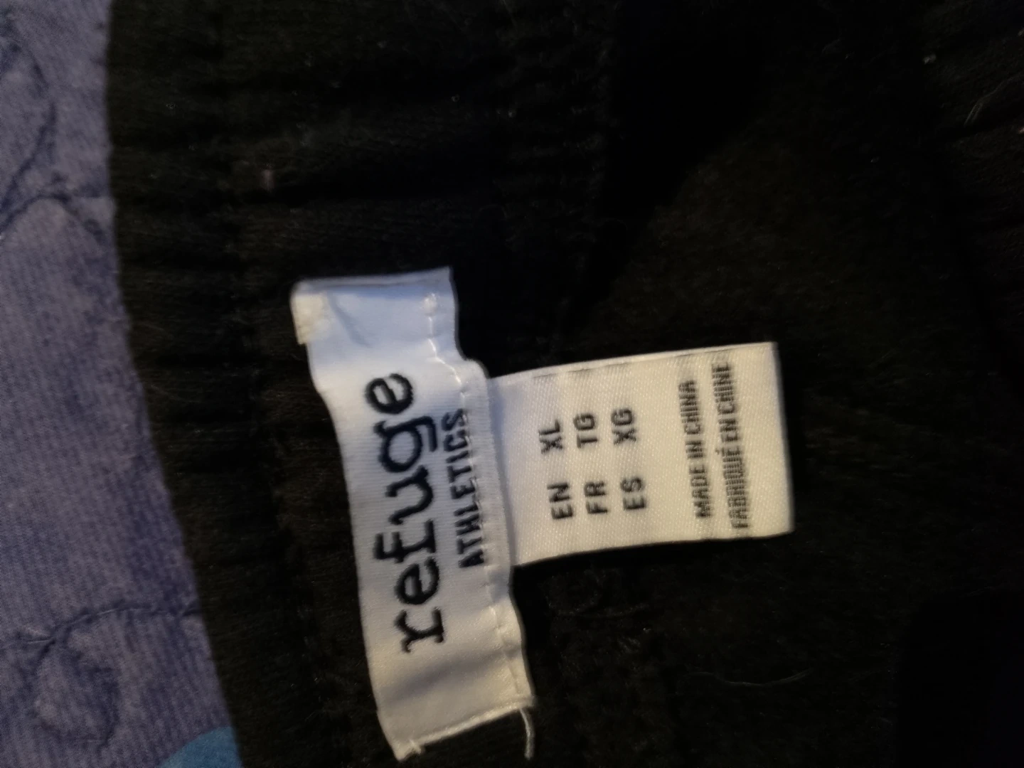 Black sweatpants from Refuge Athletics. They're comfy and great for lounging or casual wear. Elastic waistband with drawstring closure. The exact measurements are provided in the slides.