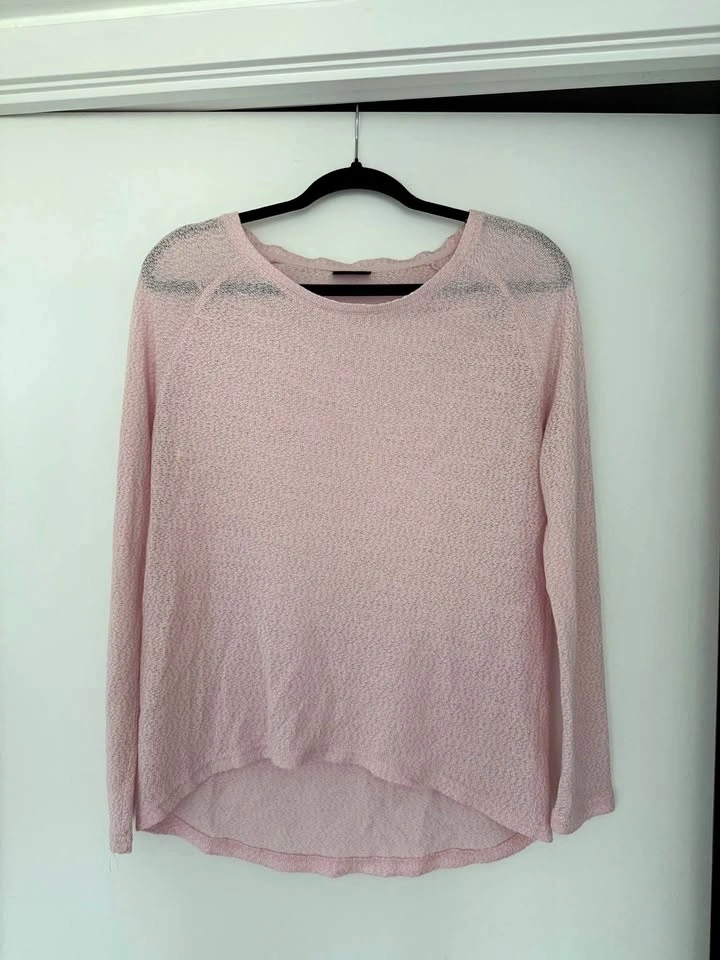 Light pink thin sweatshirt. Works well as a nice layer to throw over a tank top in the spring or on a summer evening!💓