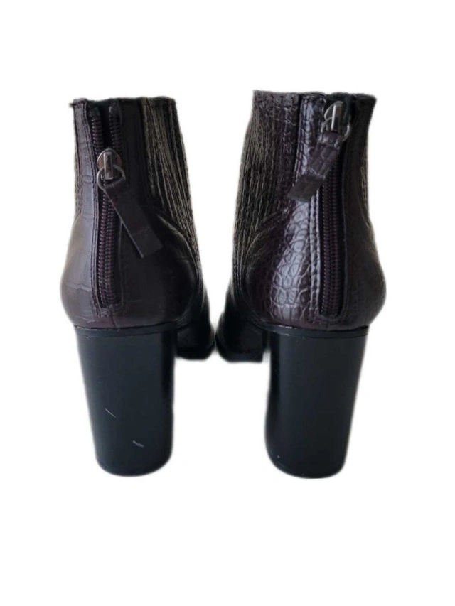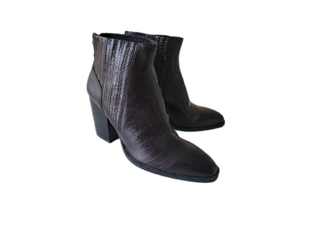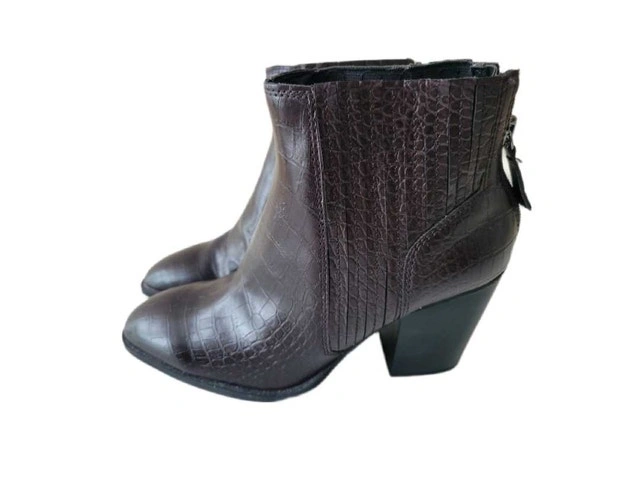 Check out these stylish Zara ankle boots, perfect for adding a touch of elegance to any outfit! Featuring a trendy crocodile print and a comfortable block heel, these boots are sure to turn heads. These are used, but in great shape and ready for a new home. Brand: Zara, Style: Ankle Boots, Colour: Brown, Pattern: Crocodile, Heel Height: High. I'm decluttering my closet, and these beauties deserve to be shown off! If the ad is up, they're still available!