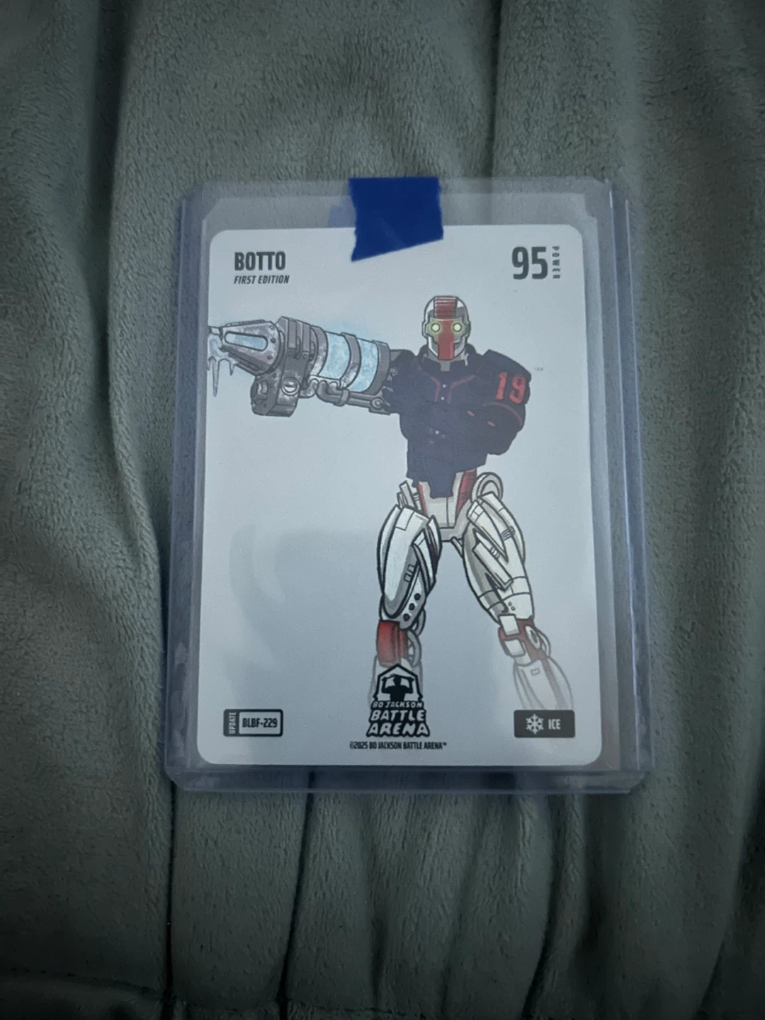 This is a 'Botto' trading card from the Bo Jackson Battle Arena series. It's a 'First Edition' card with a power level of 95 and the 'Ice' attribute. The card features unique artwork and game stats.