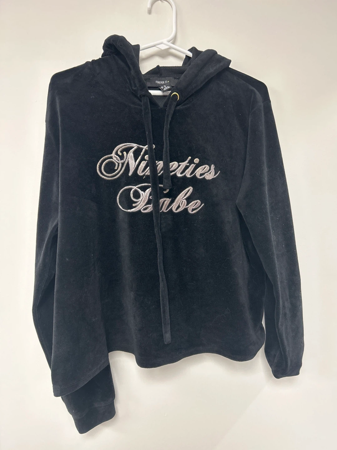 Black Velour Hoodie "Nineties Babe"