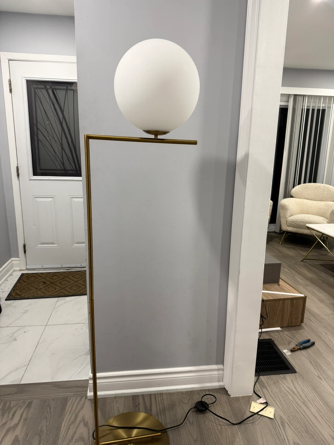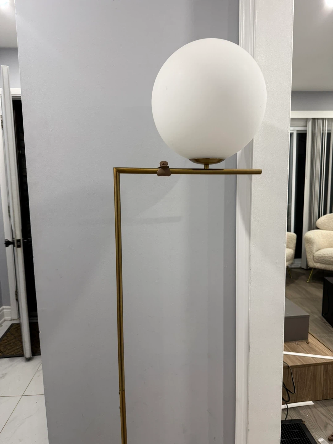Buy & SellBrass Floor Lamp with White Globe ShadeBrass Floor Lamp with White Globe Shade$50Modern brass floor lamp featuring a spherical white glass shade. It's a stylish accent for any room. Base is round and weighted for stability.WHERE TO MEETCheck LocationView MapSELLERverifiedRoofiaWestbrook / Mill Pond720 reviews1 chats·3 favorites·17 viewsSEND CHAT TO SELLERHi Roofia! I’m interested in your listing.Hi Roofia! I’m interested in your listing.Get the Karrot app to chatSign In to chat