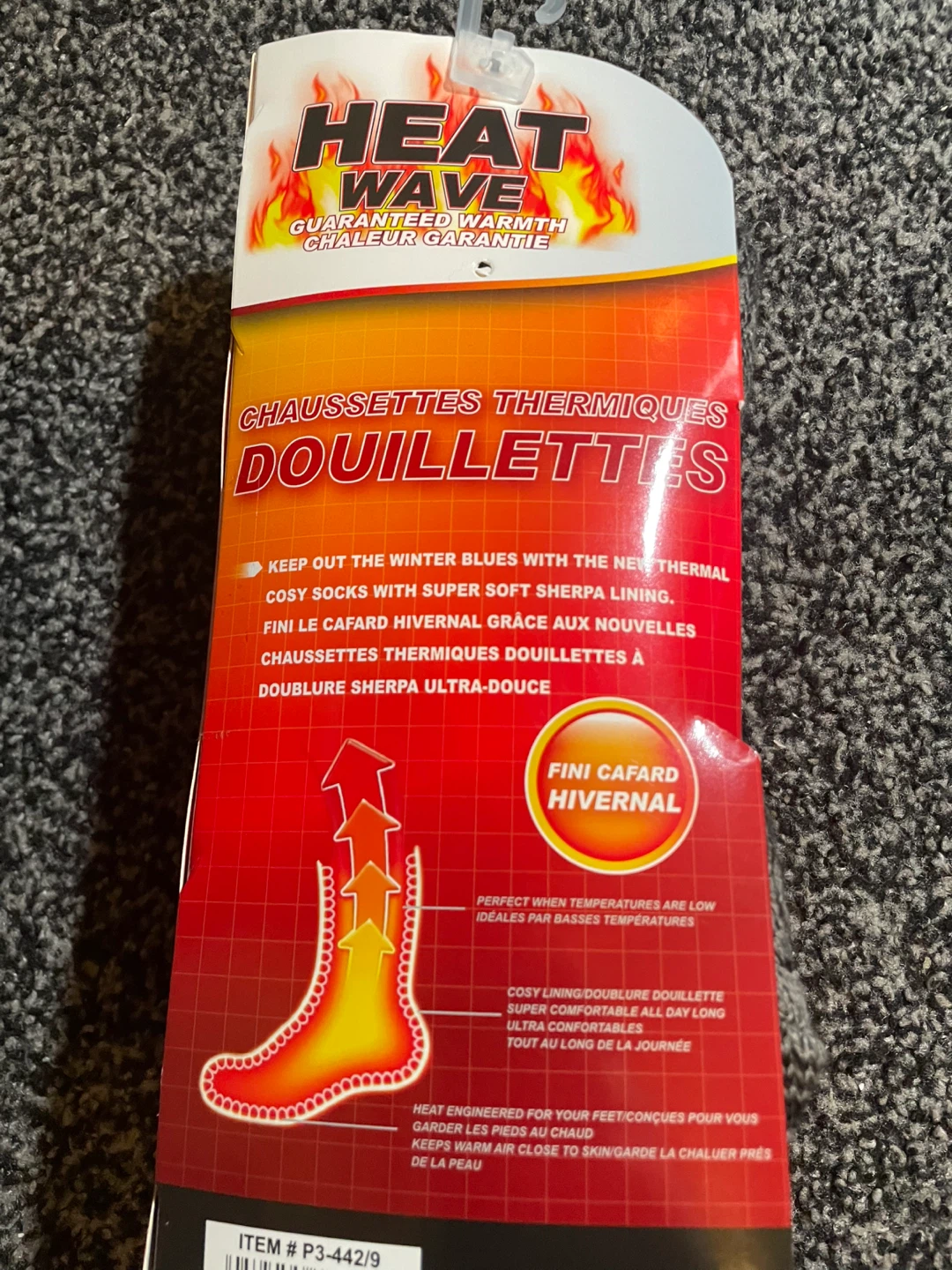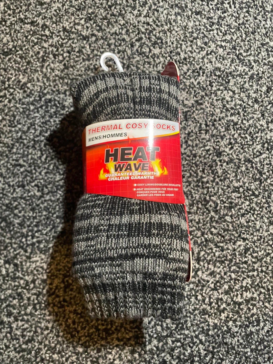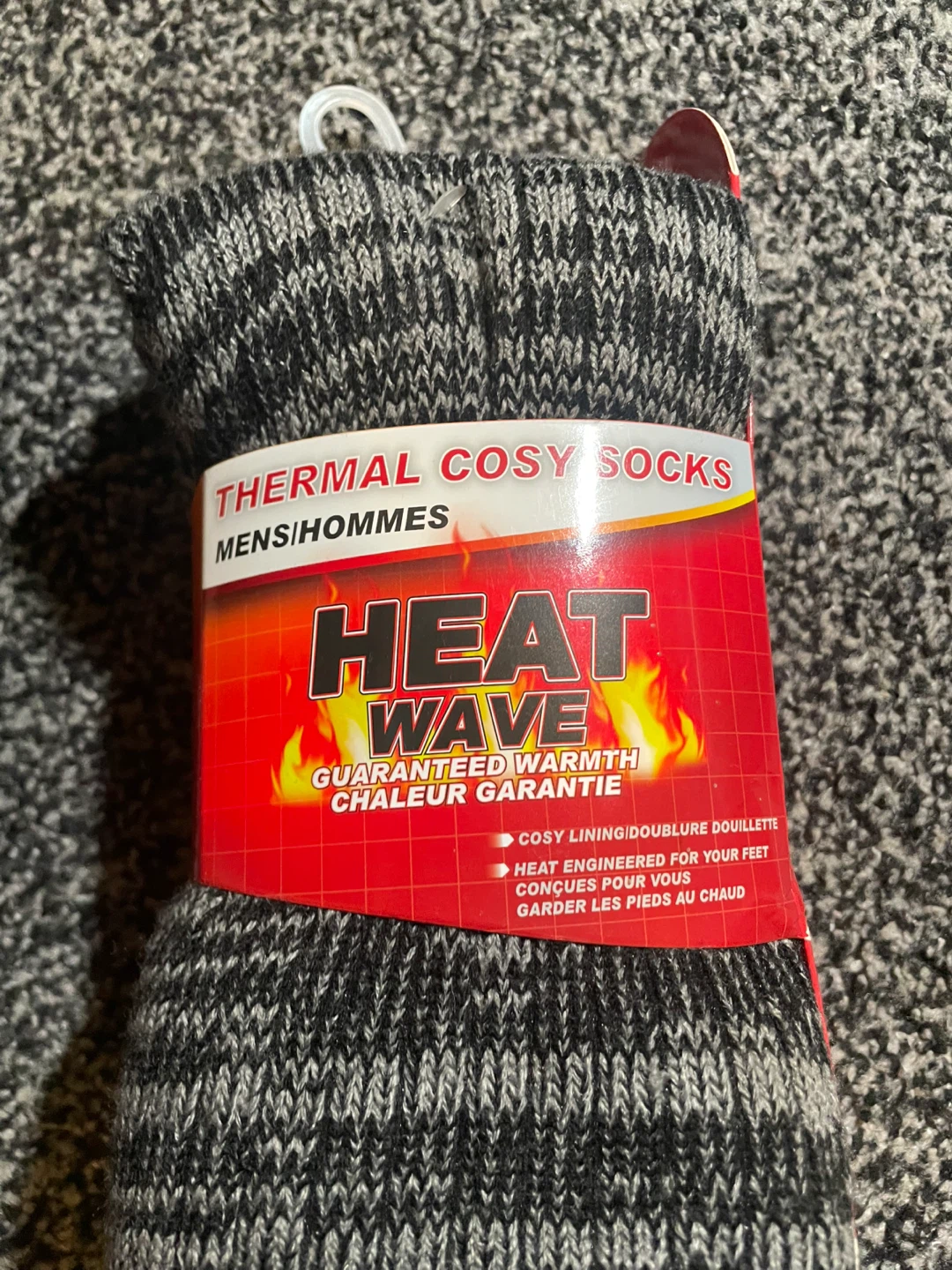 Brand new Heat Wave thermal cosy socks, still in the original packaging! These socks are men's size US 6½-11½ and feature a super soft sherpa lining to keep your feet warm and cozy. They are perfect for low temperatures and are heat engineered to keep warm air close to the skin!