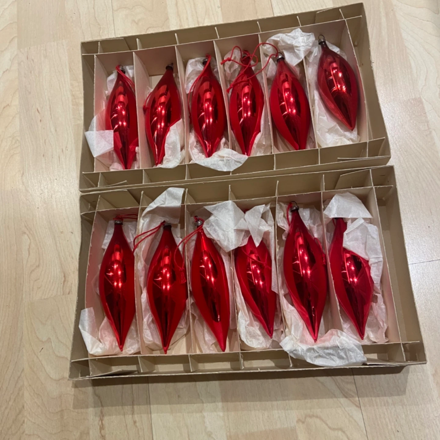 1 / 41 / 4Buy & SellVintage Red Christmas Ornament Set (2 Boxes)Vintage Red Christmas Ornament Set (2 Boxes)$48Here is a set of 12 red vintage icicle Christmas ornaments. Note that one is smaller than the others, in very good conditionConditionLike newWHERE TO MEET#1-3516 15 Street SWView MapSELLERverifiedGaryAltadore770 reviews1 chats·2 favorites·50 viewsSEND CHAT TO SELLERHi Gary! I’m interested in your listing.Hi Gary! I’m interested in your listing.Get the Karrot app to chatSign In to chat