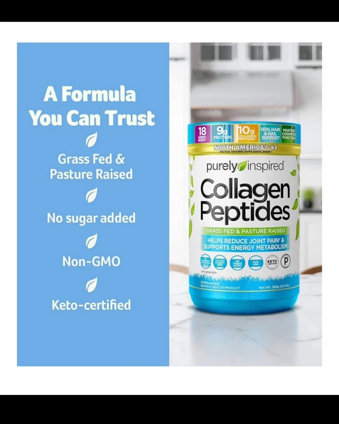 No Artificial Flavors, Colors, or Sweeteners: Purely Inspired Collagen Peptides is made of pure ingredients you can feel good about. It’s gluten-free, keto-friendly, non-GMO, and contains no dairy ingredients.