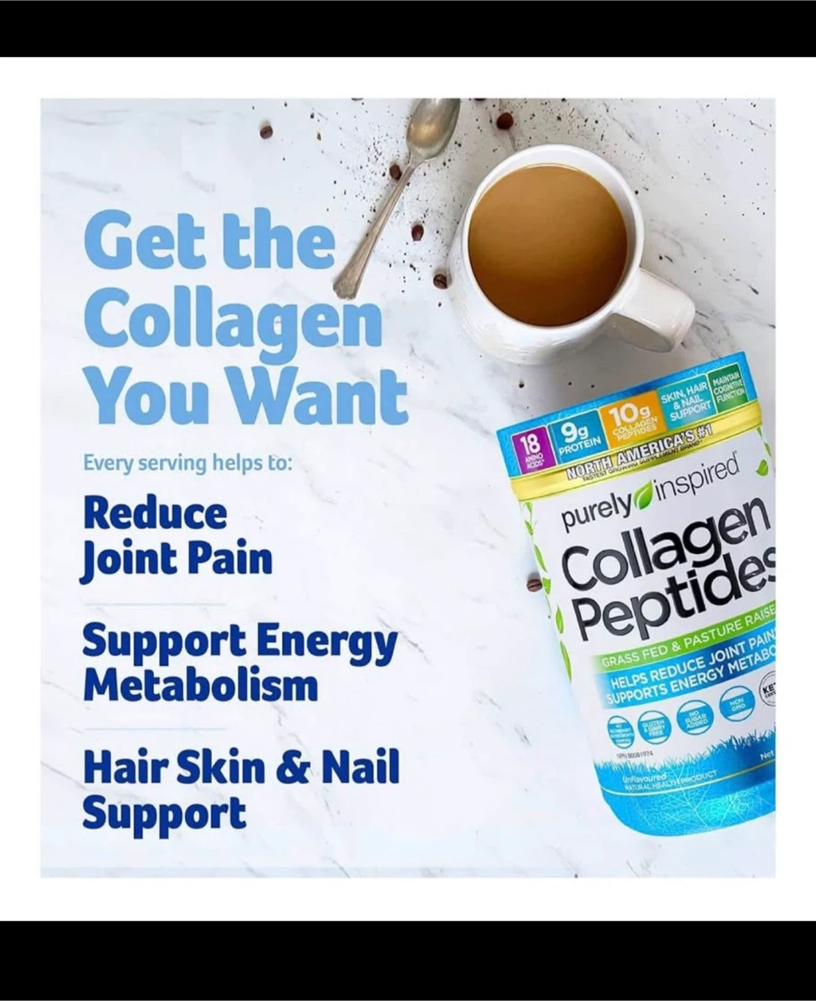 Hair, Skin & Nail Support: Purely Inspired Collagen Peptides formula is packed with 10 grams of hydrolyzed collagen to support your hair, skin, and nails, so you can look and feel great from the inside out. Unflavored. 28 servings per container.