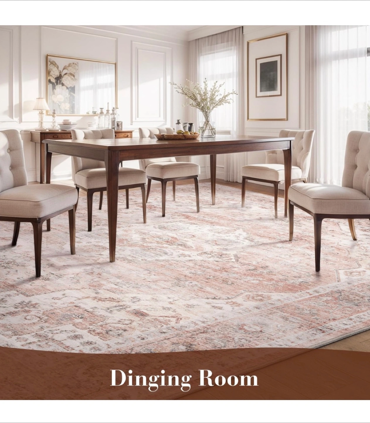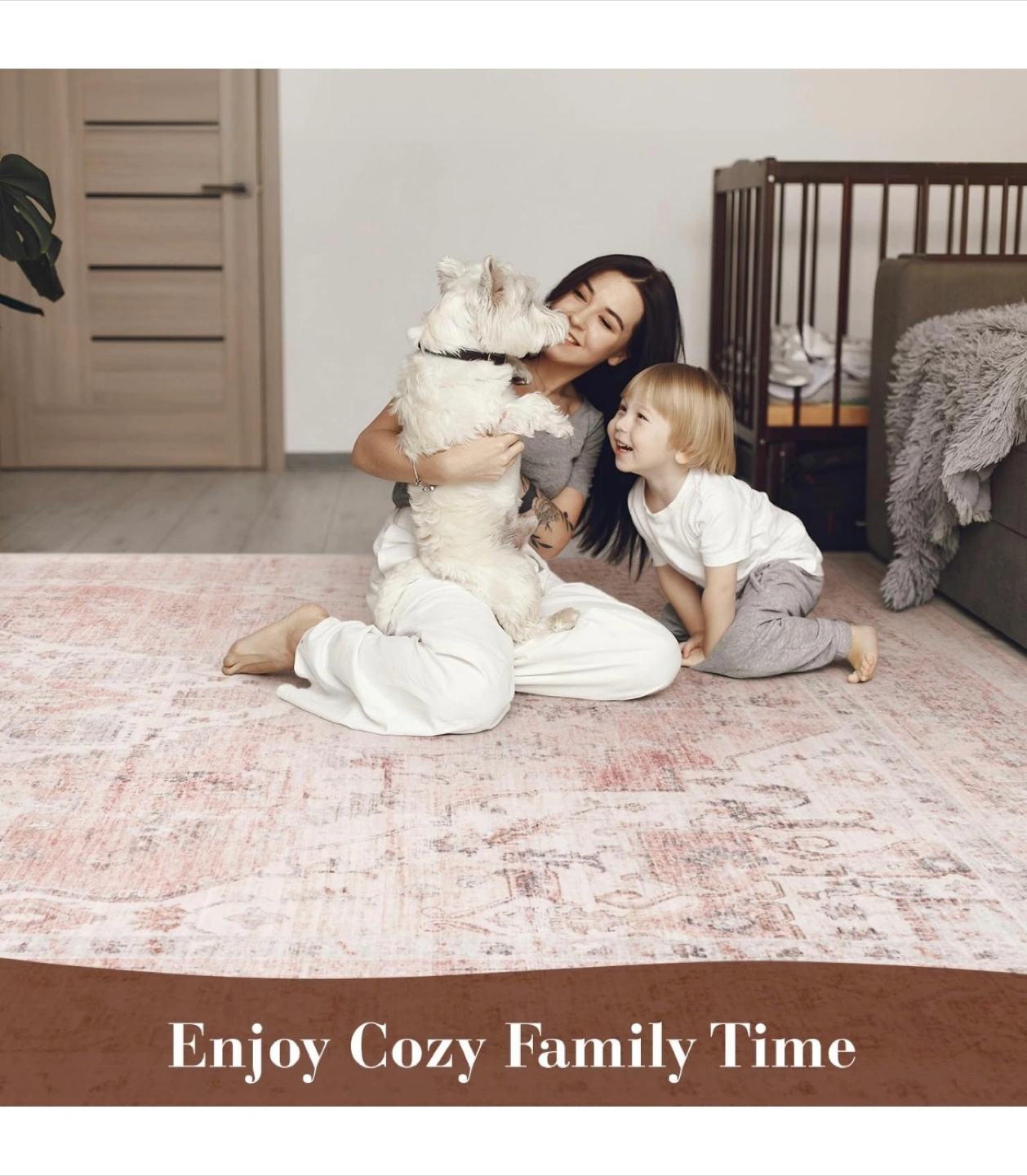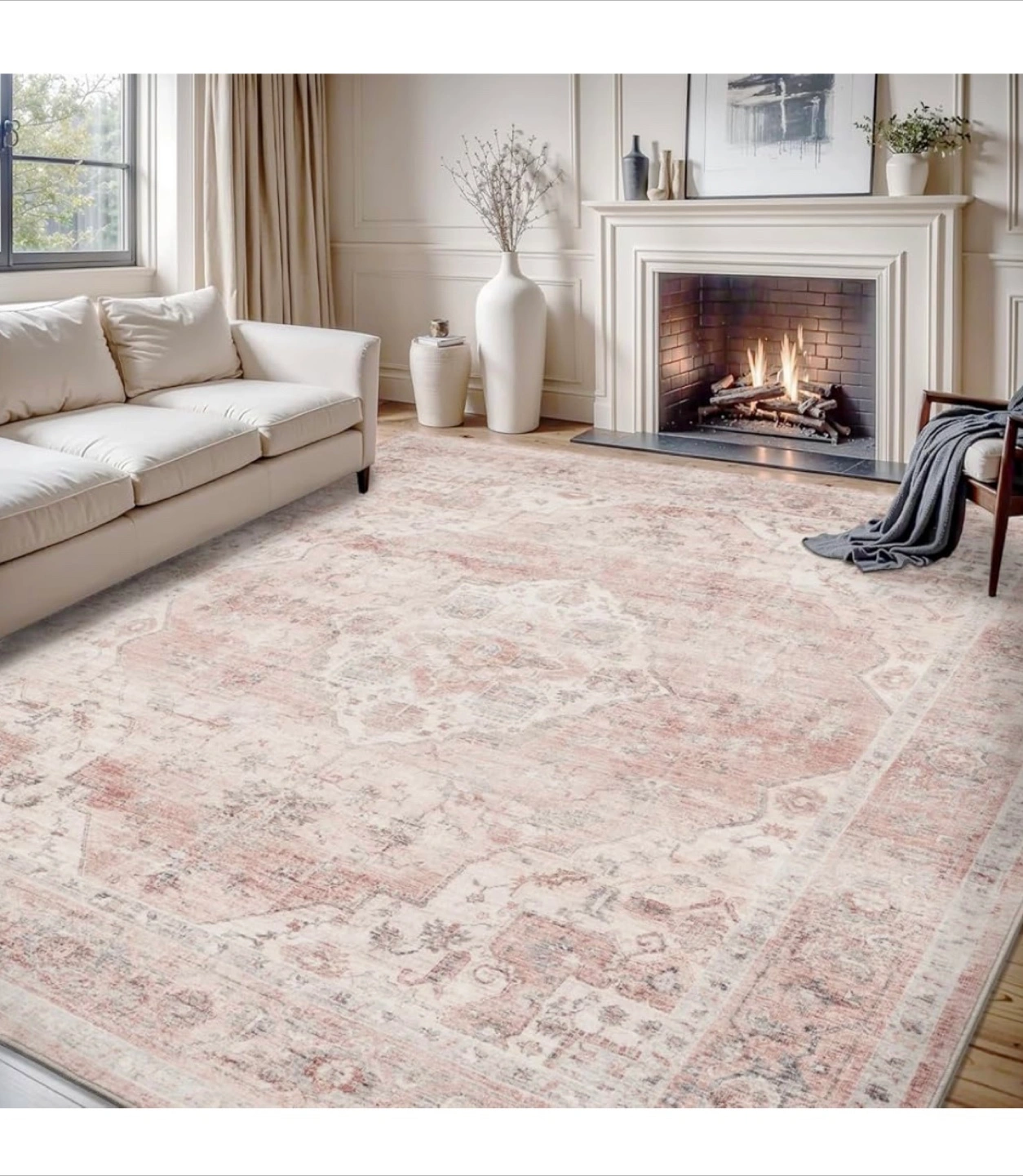 MontVoo-Area Rug 9X12 Rugs for Living Room-Pink Machine Washable Rug-Soft Living Room Rug-Vintage Non Slip Carpet-Rugs for Bedrooms Dining Room Living Room Office