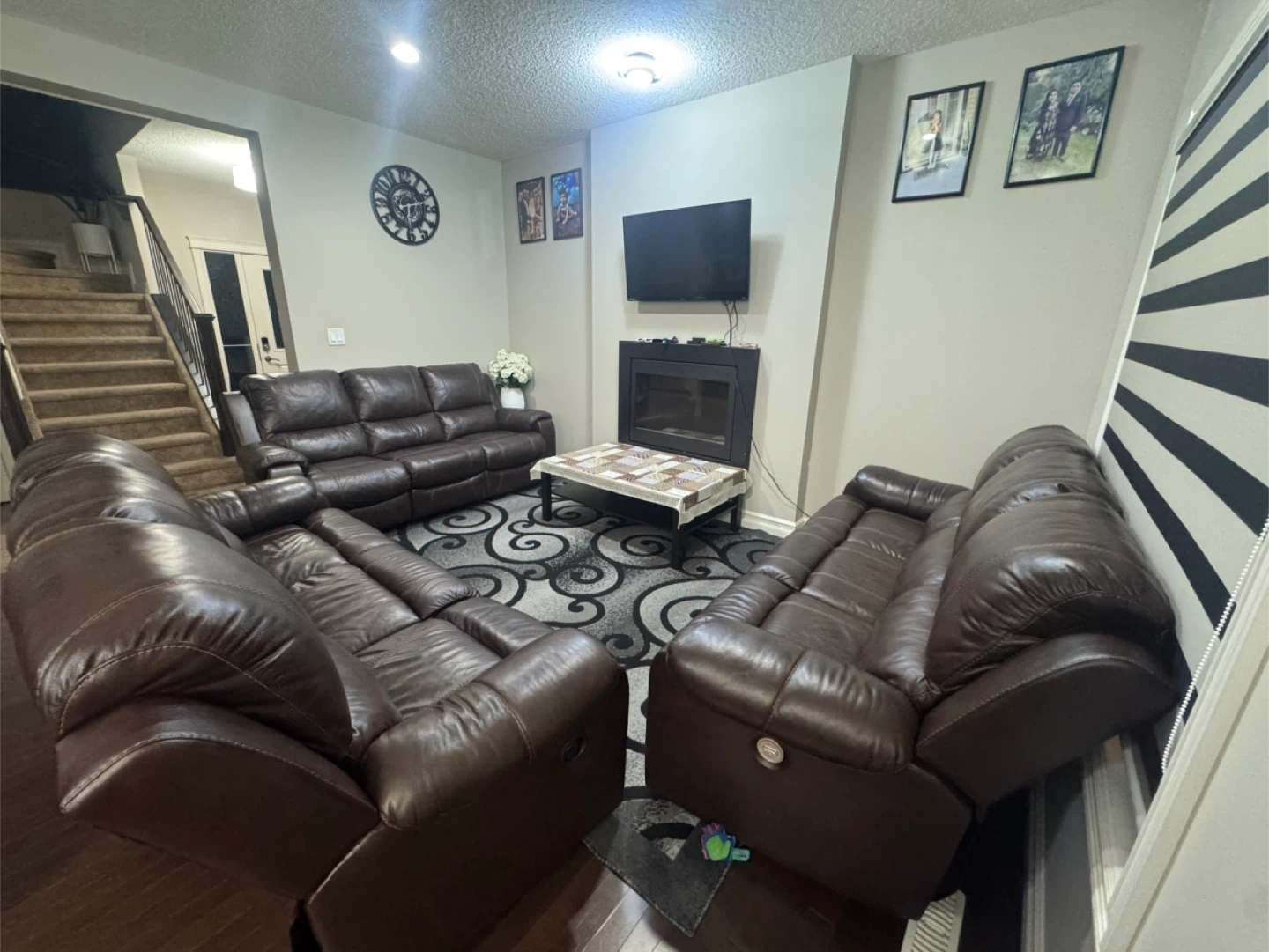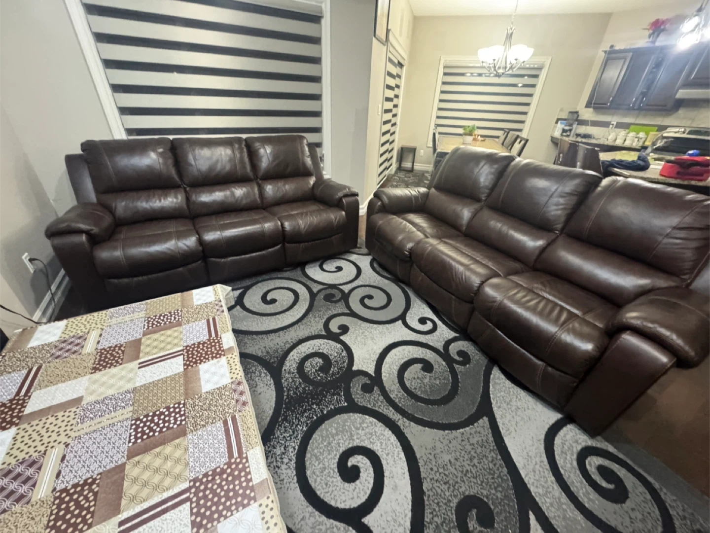 Selling a brown leather sofa set. It includes a three-seater sofa and all are reclining sofas. The set is in very good condition .no any issues and it would be a great addition to any living room