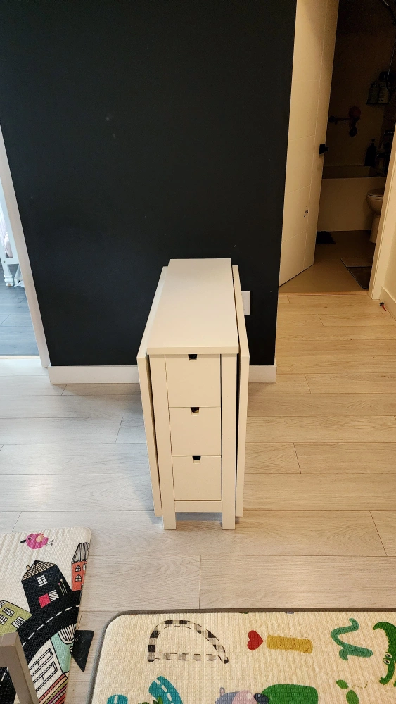 Great folding dining table. great for small apartments! open to entertain dinners, fold up and tuck away to clear up your space.