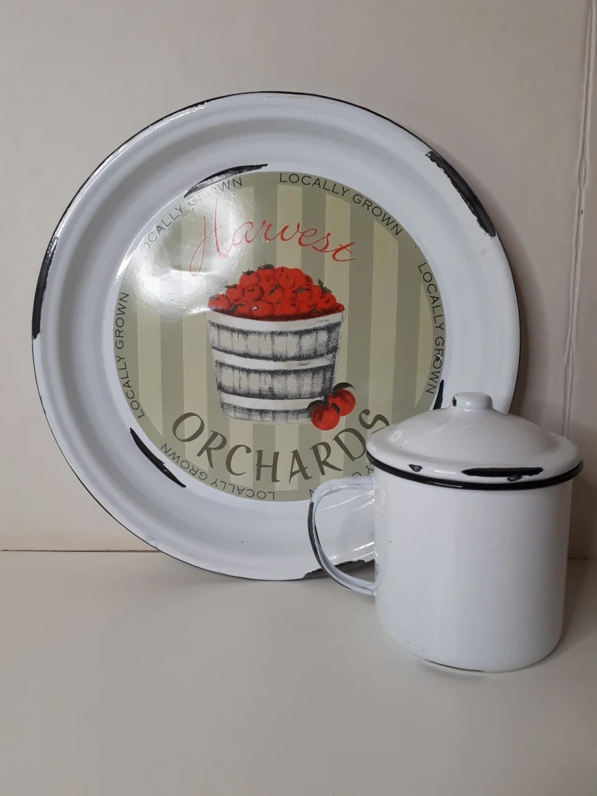 Metal Rustic Plate w/Covered Mug
