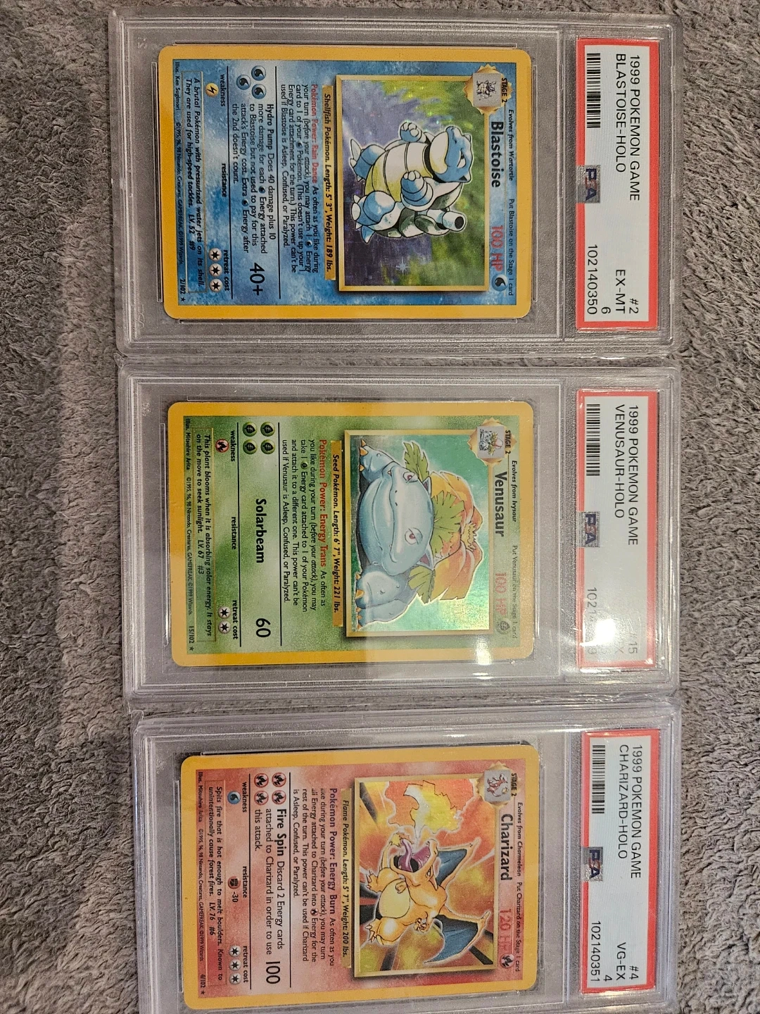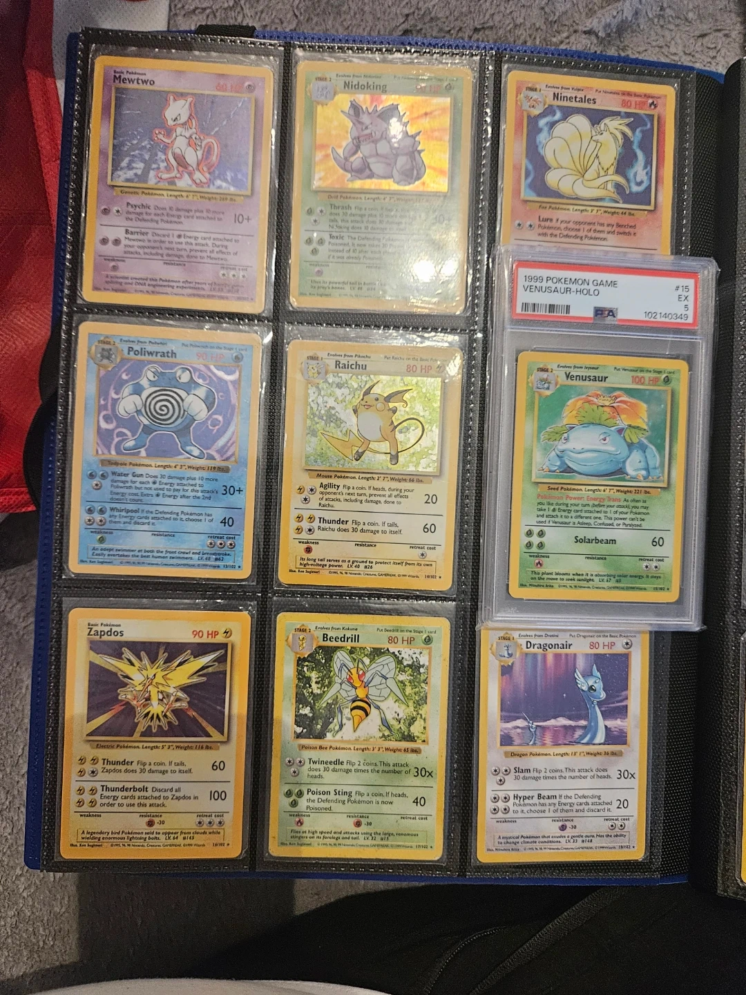 Selling a collection of vintage Pokemon cards! Compete base set 102/102 Includes graded big 3 cards like Blastoise, Venusaur, and Charizard.
