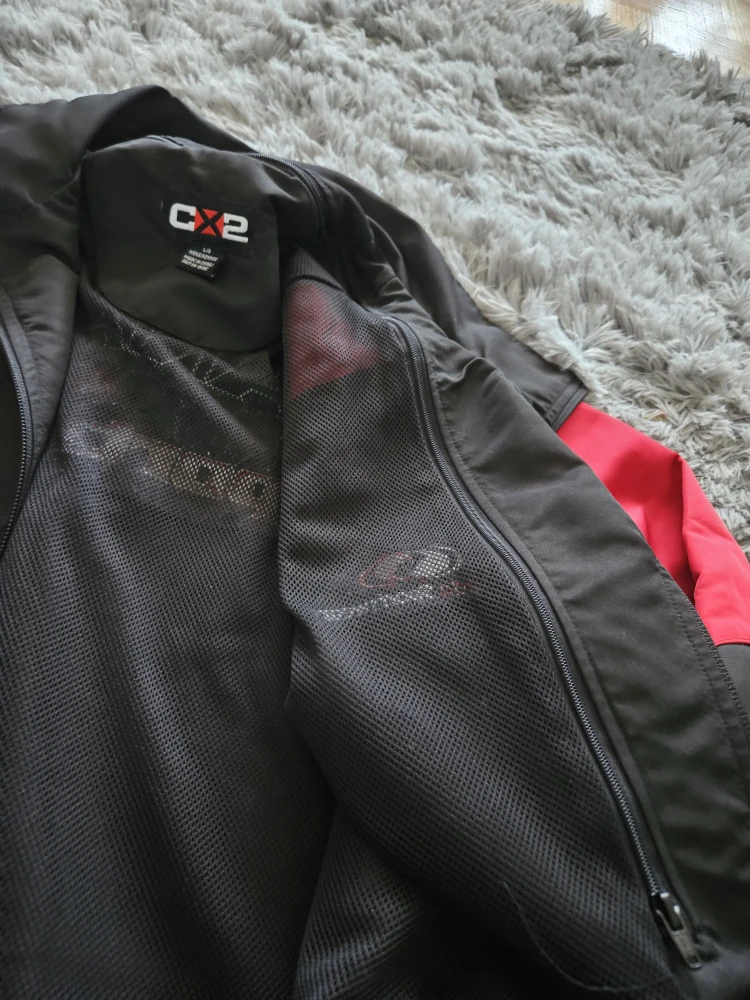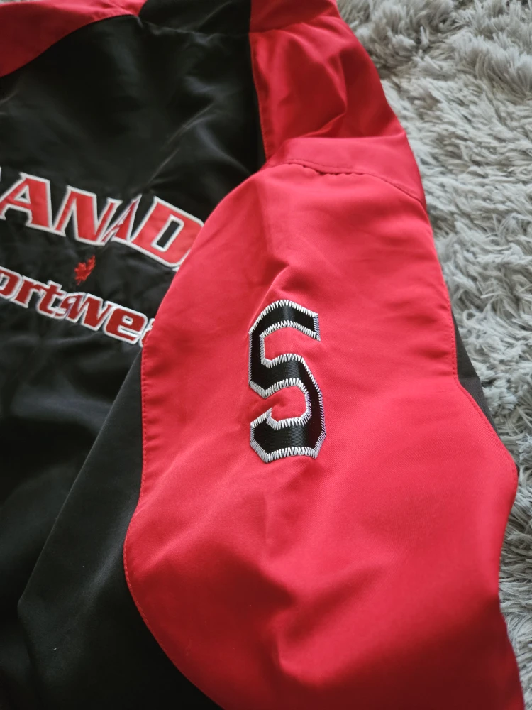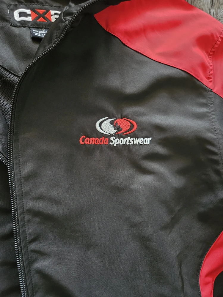 Selling a Canada Sportswear CX2 jacket in size L. It's black with red accents, perfect for layering! The jacket is in great condition and has a full zip closure and pockets.