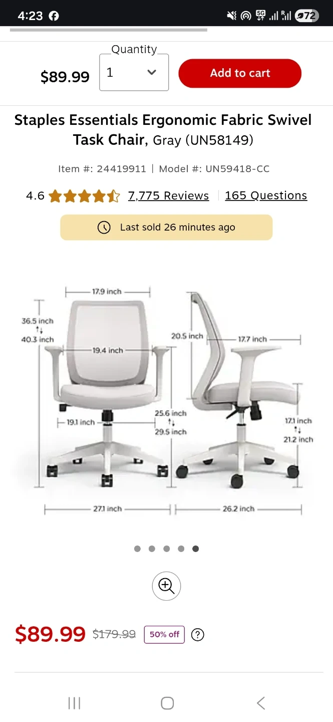 This Staples Essentials Ergonomic Fabric Swivel Task Chair is grey. It features a mesh back and fabric seat for comfort. The chair has adjustable armrests and a swivel base with wheels for easy mobility. This chair is suitable for home offices or work environments.