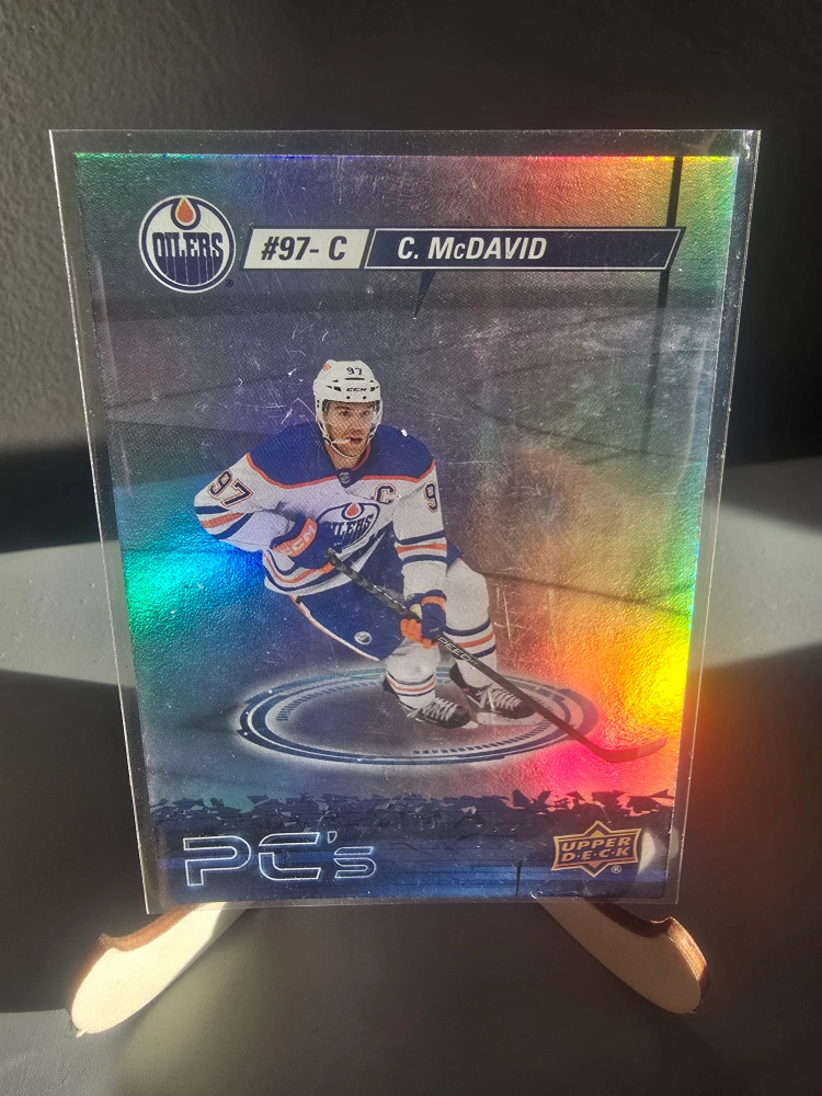 Selling a Connor McDavid PCs hockey card from the Edmonton Oilers. It's an Upper Deck card and looks to be in good condition!