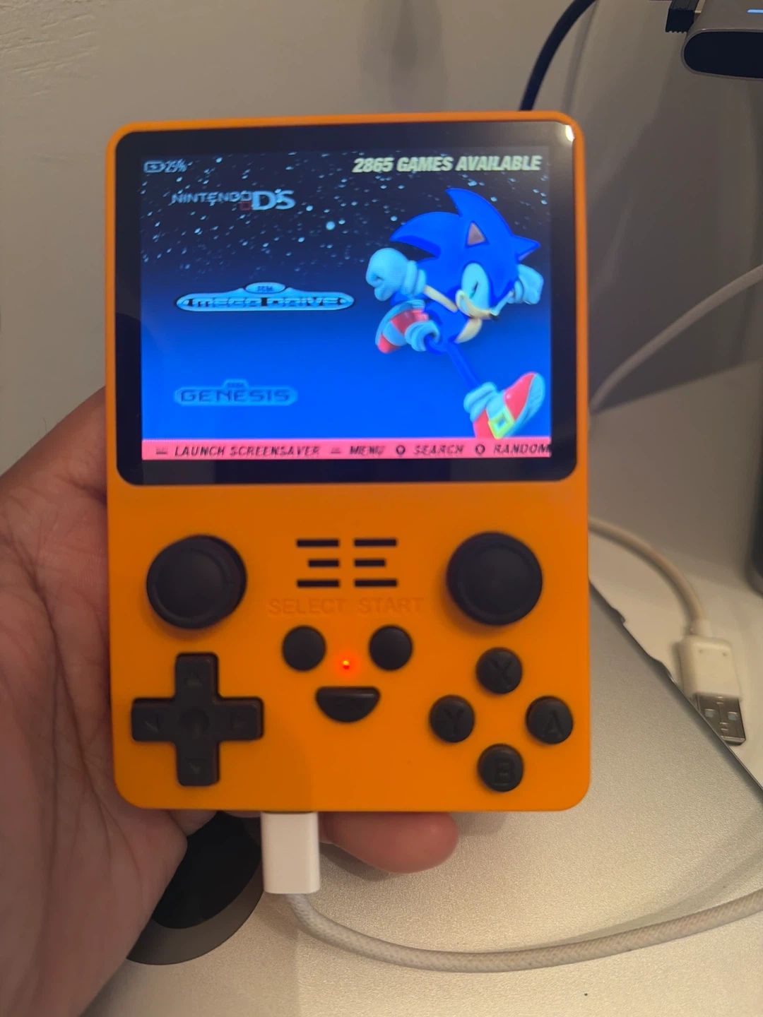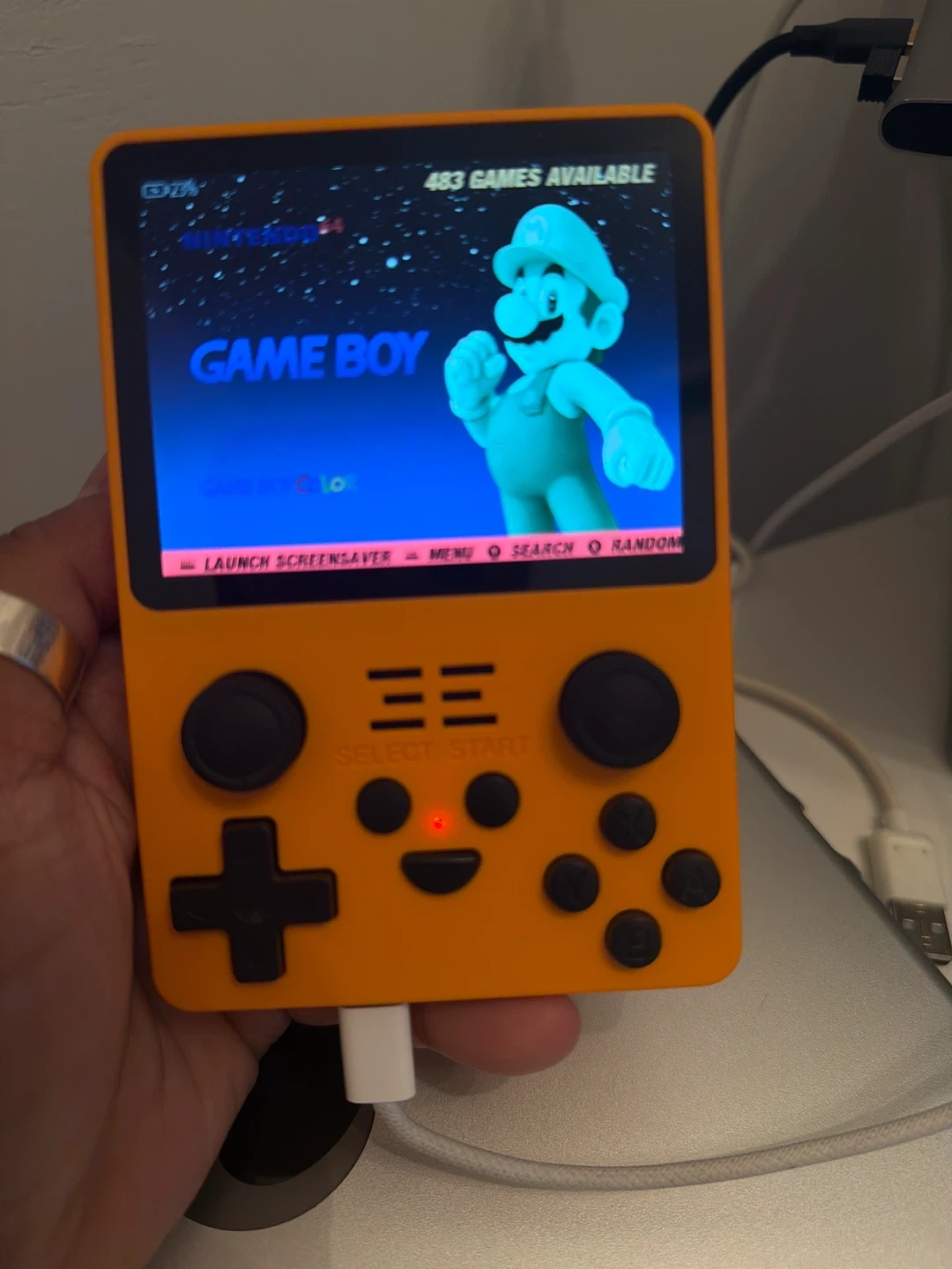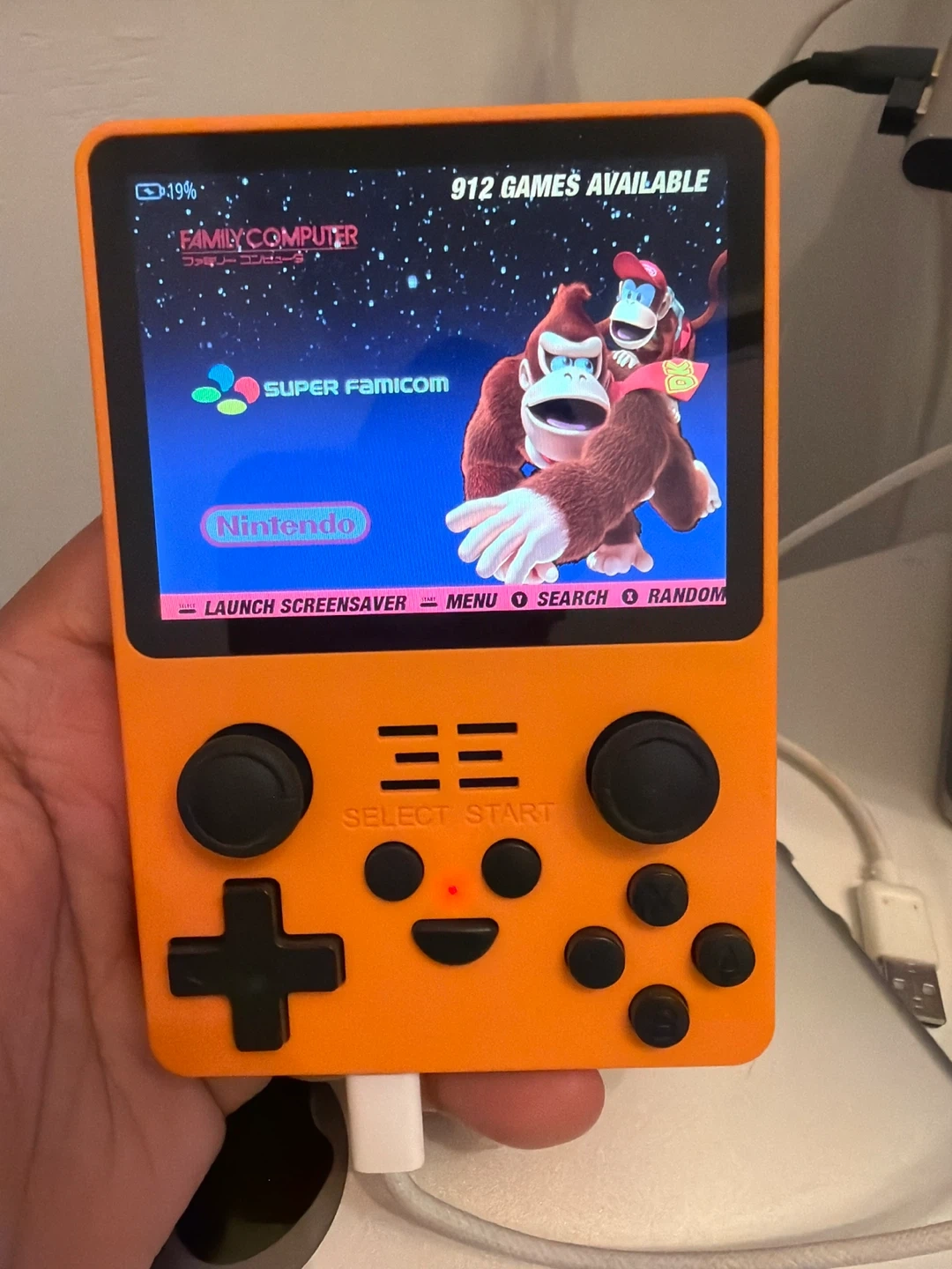 Never used. This orange handheld console comes pre-loaded with thousands of games across various platforms like Nintendo DS, Game Boy, and Arcade Classics. It's a great way to revisit classic gaming on the go. Includes a USB charging cable. Selling as I’m not a gamer