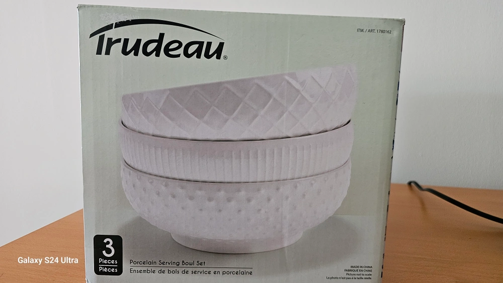 Selling a brand new Trudeau Porcelain Serving Bowl Set! It includes 3 pieces and comes in its original box. These bowls are perfect for serving up your favourite dishes! They are made of porcelain and feature a beautiful design. Item/Art. 1780162
