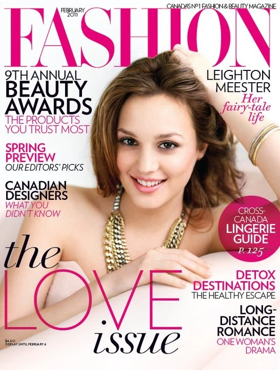 Back issue of Canada's FASHION Magazine February 2011 cover Leighton Meester in perfect condition. Selling price: $10. Cash accepted.