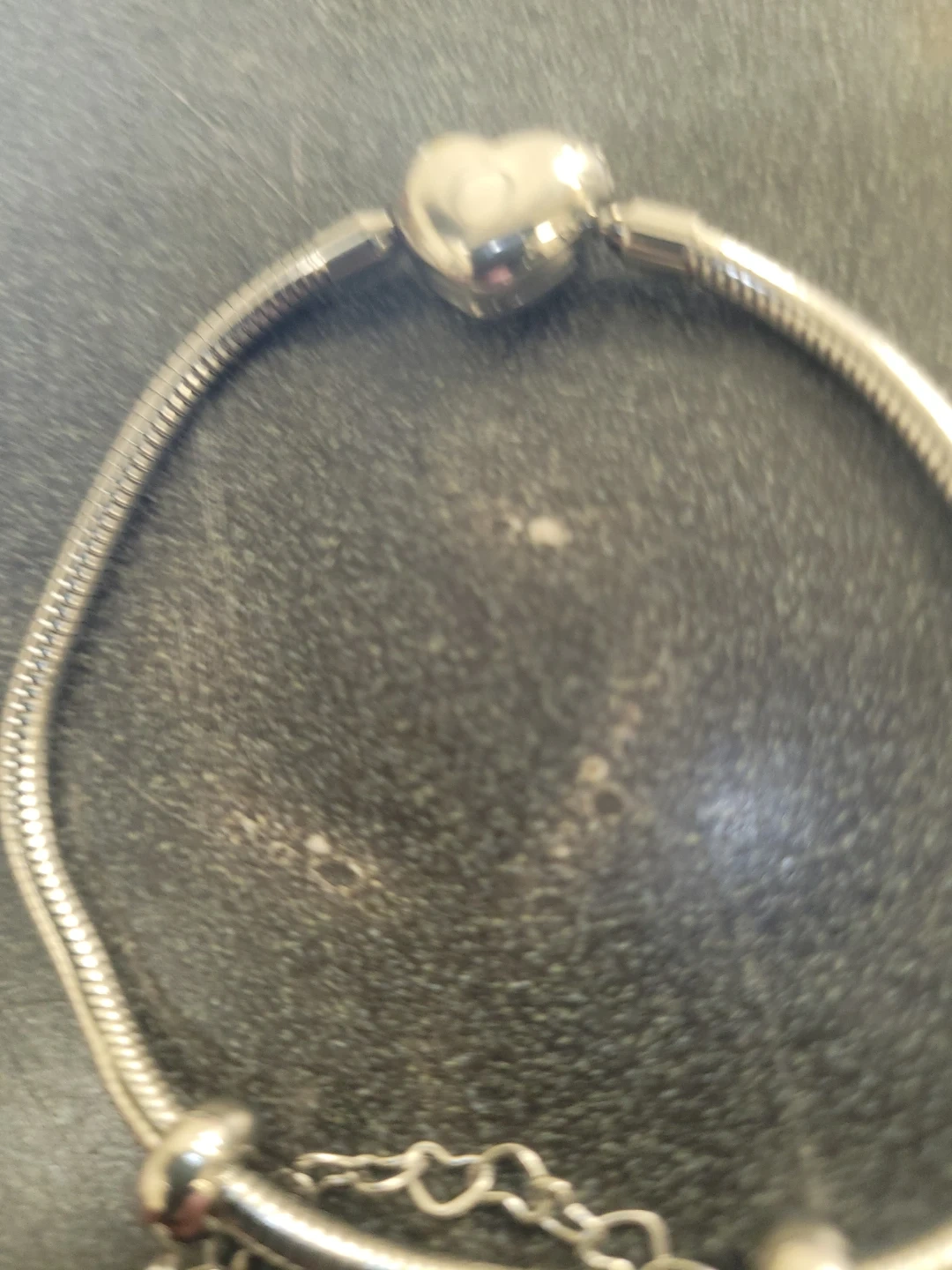 This Gnoce bracelet features a snake chain design with a central heart-shaped charm. It has an adjustable clasp for a comfortable fit. It's a lovely accessory for everyday wear or for adding to a charm collection.